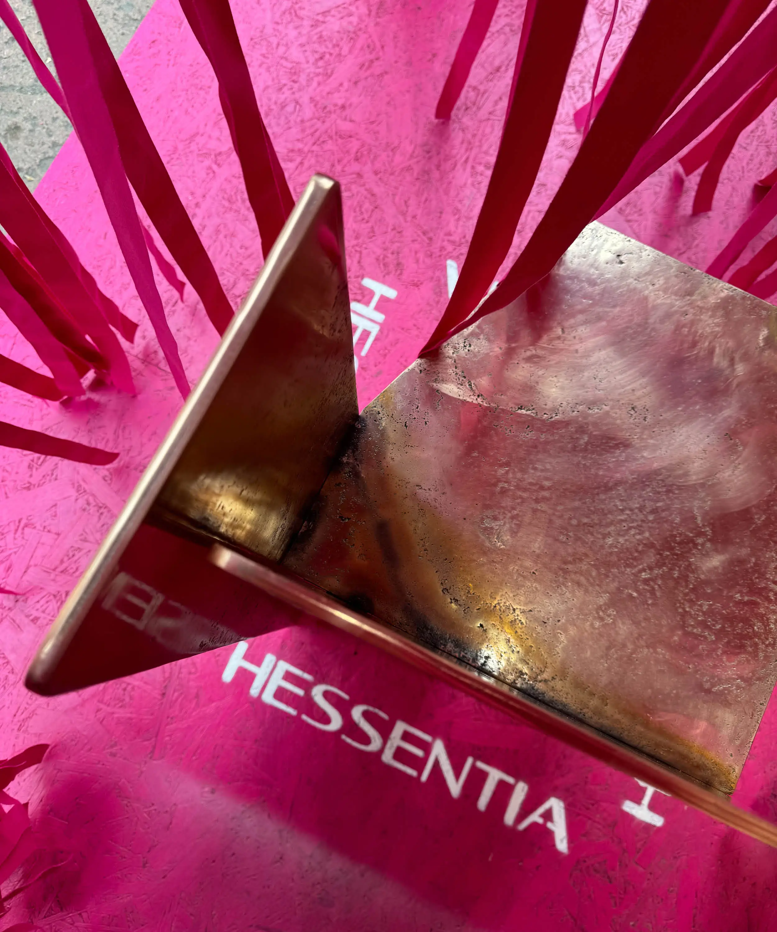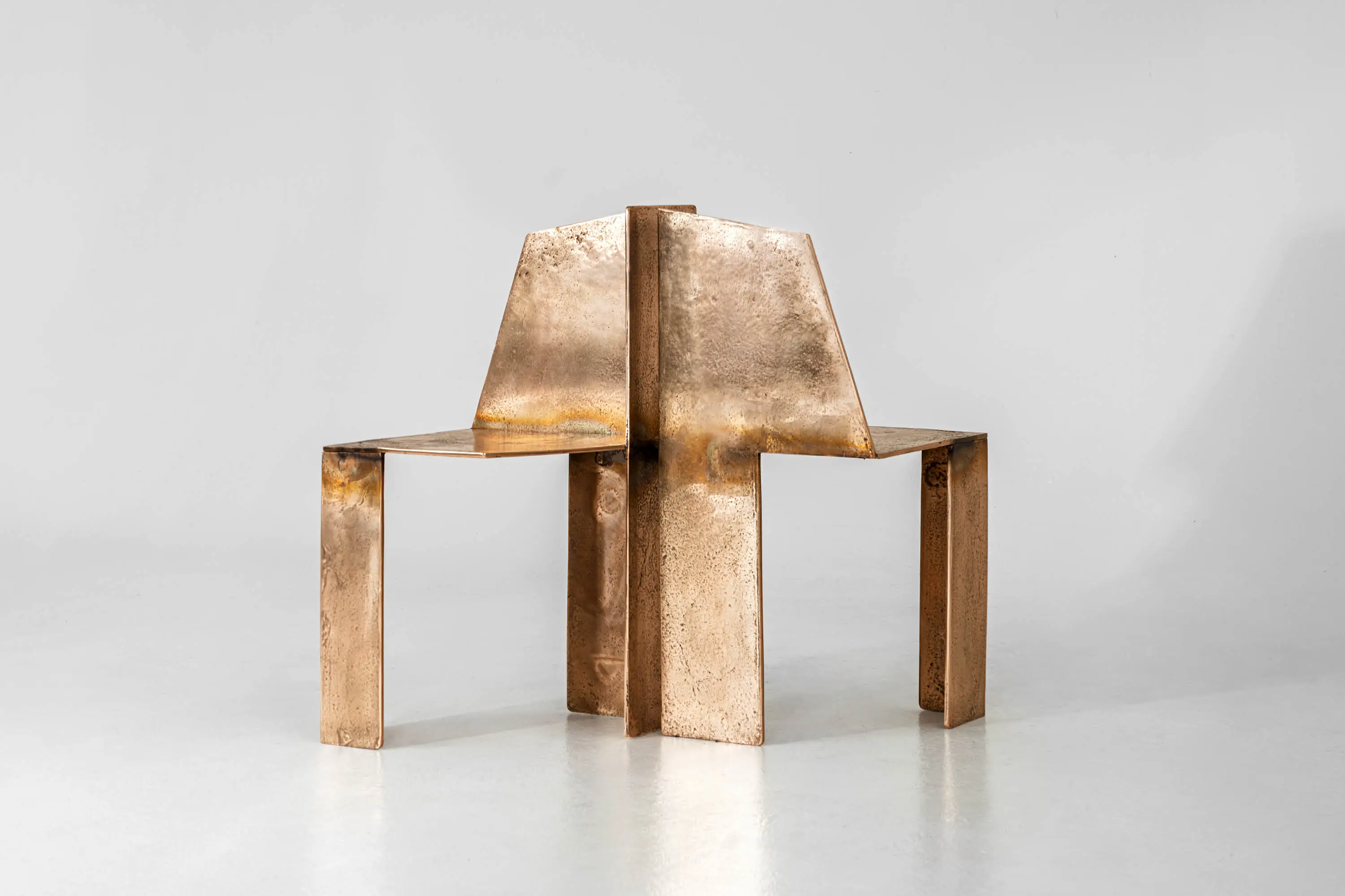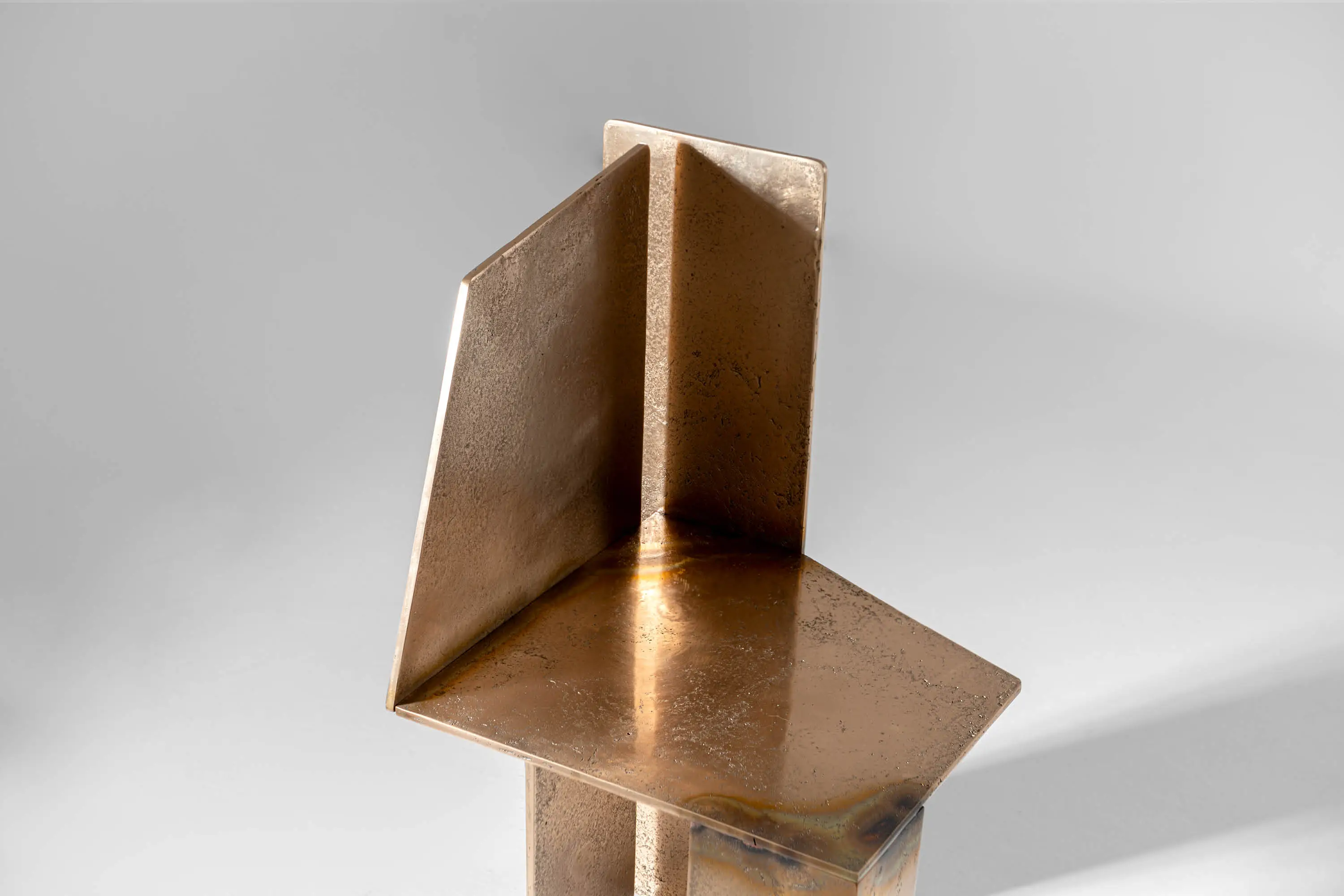 The Cadrega Chair Collection embodies the essence of minimalist design, made entirely of cast bronze. Each piece in the collection stands out for its unique surface, where the polychrome effect of the visible welding emphasizes the contemporary aesthetics of the seat. This detail creates a captivating game of visual and tactile contrasts, making Cadrega a piece that combines simplicity and artistic refinement.