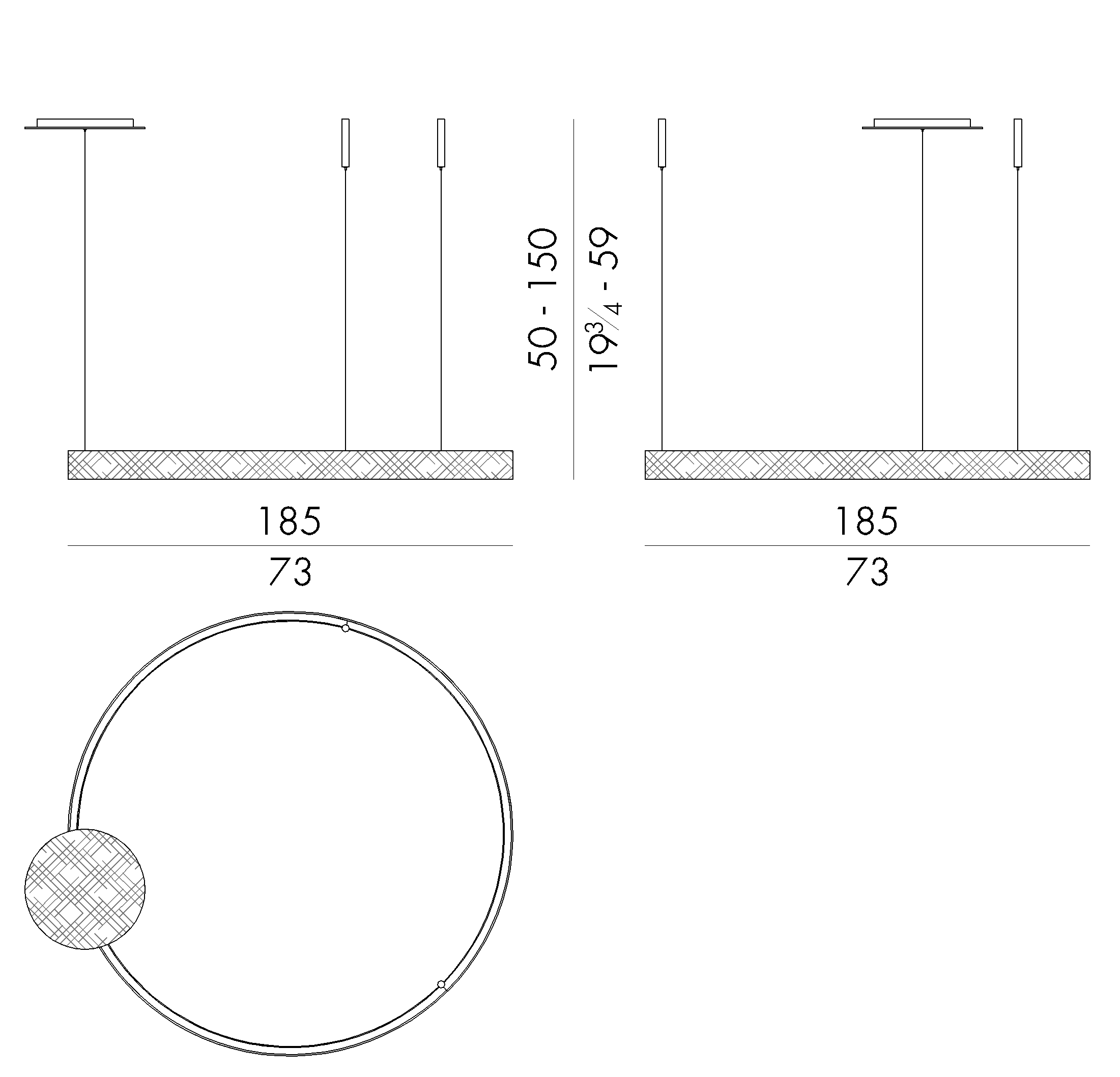 Astro chandelier, that can be chosen as protagonist of a luxurious environment, has a circle shape which is a symbol of harmony. Since ancient times this geometrical figure has represented the sun, whose warmth is associated to love, beauty and truth. The light of this chandelier is spread through two metal foils whose surface is “frosted” thanks to an handmade process that gives a spectacular look to the entire piece.