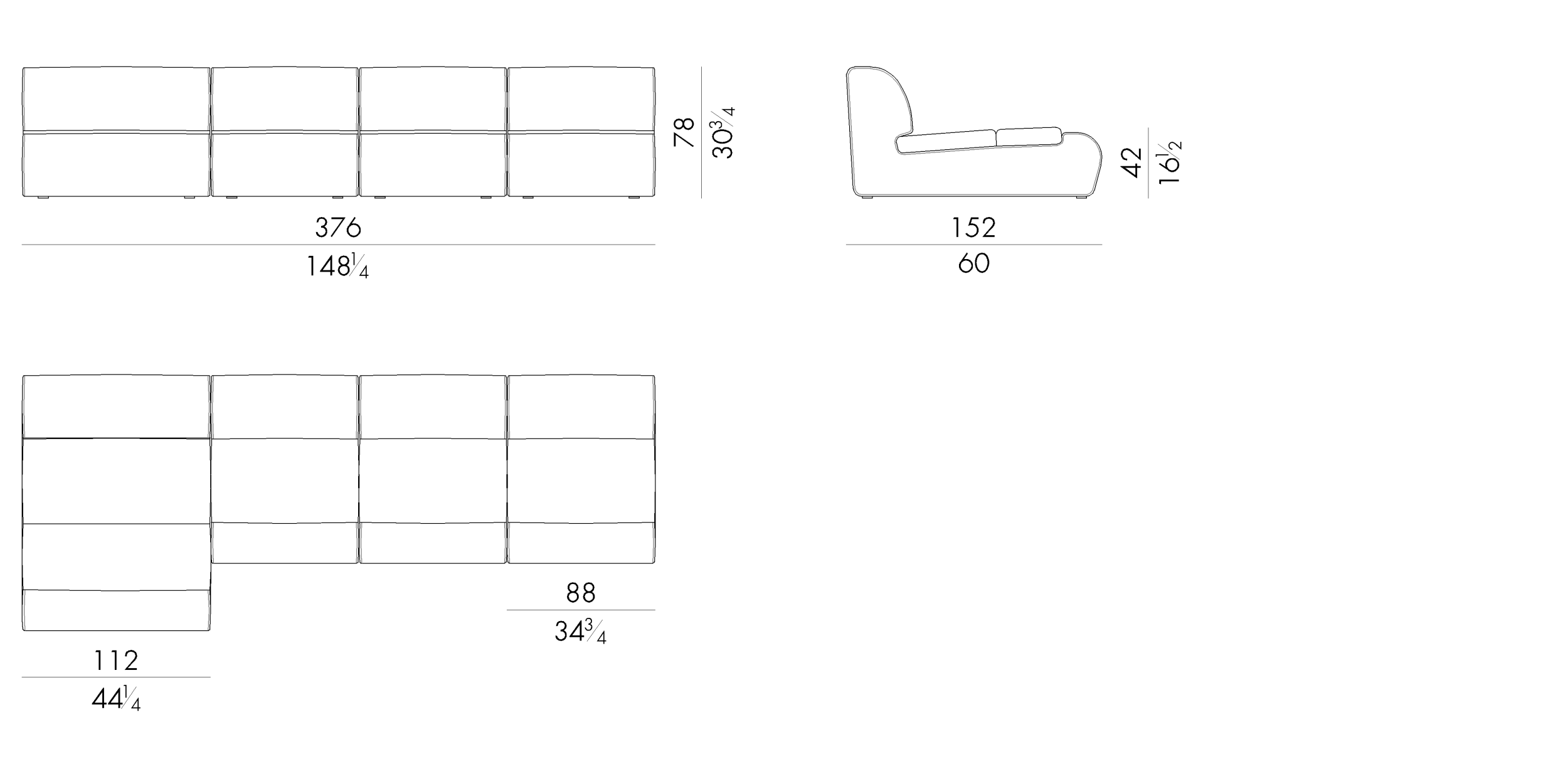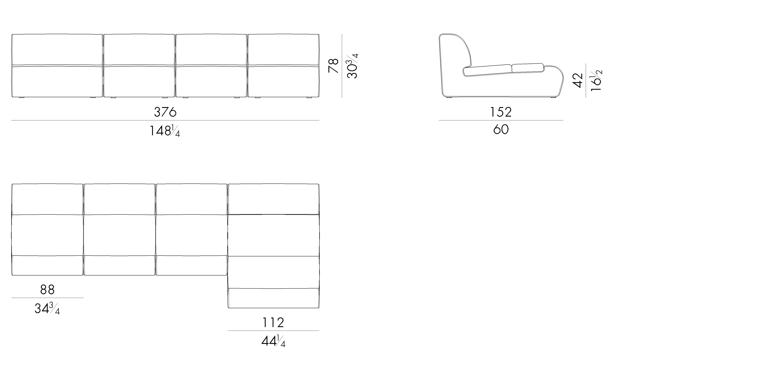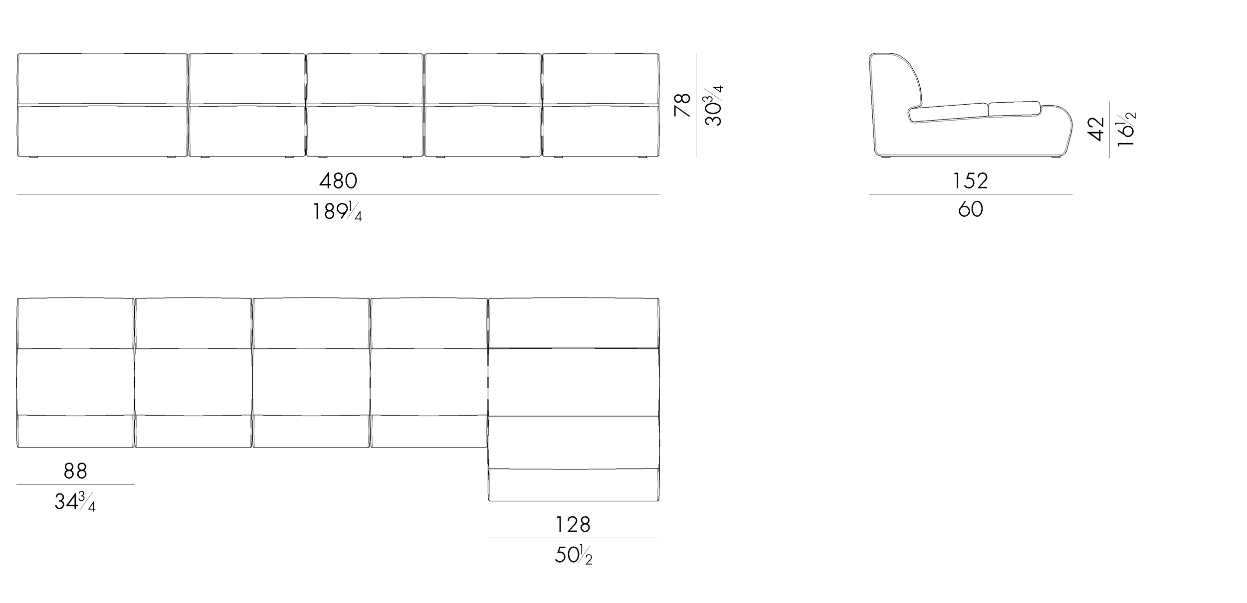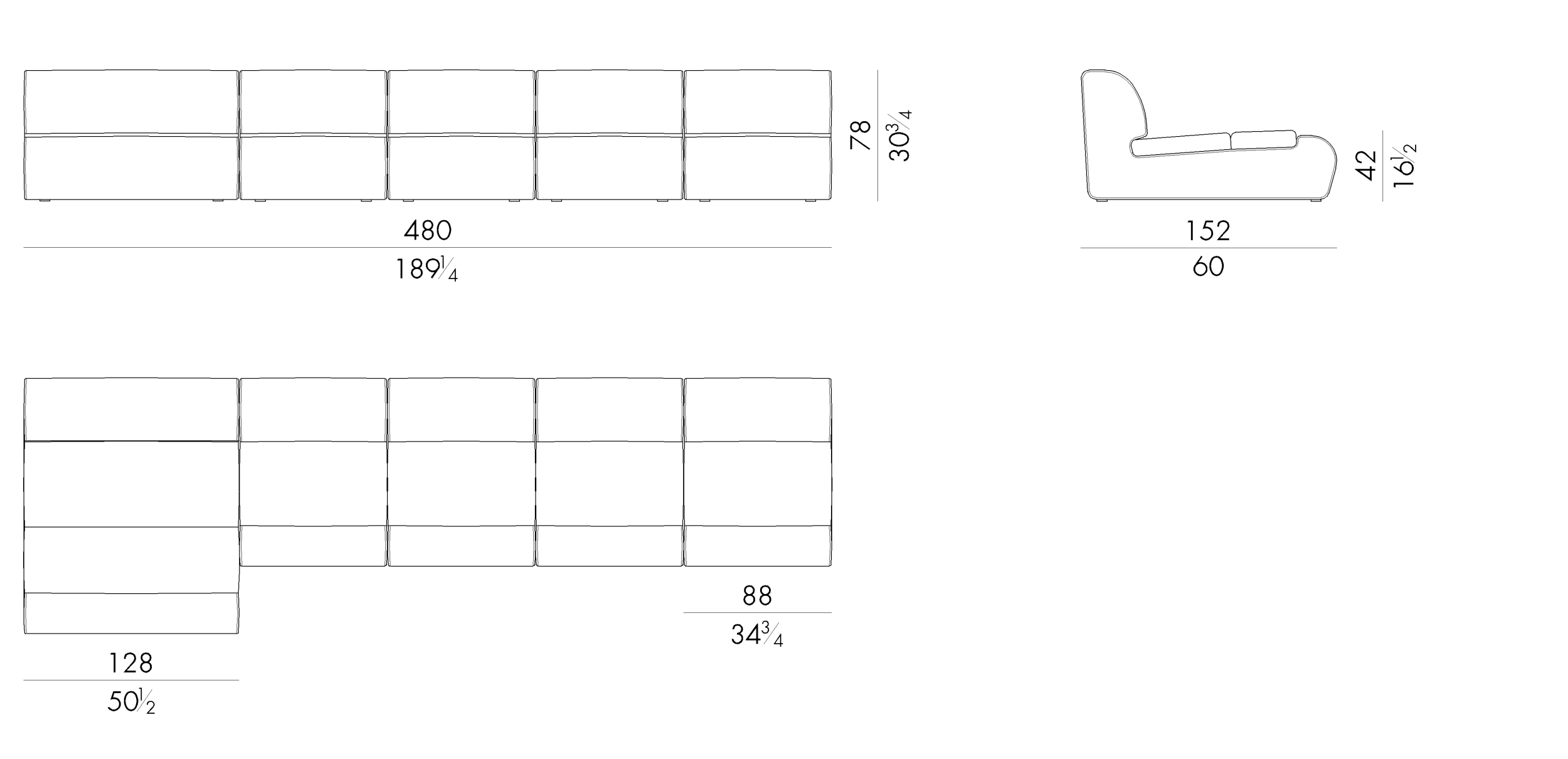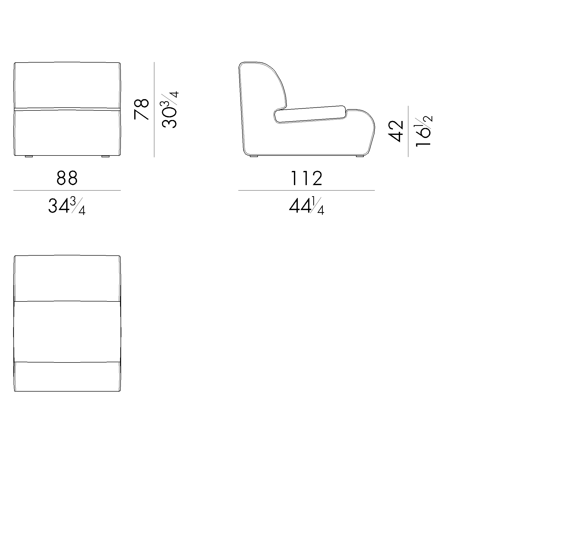 Inspired by the legendary 1970s, Denver is a combination of perfectly balanced shapes, whose design is clearly visible from the side. Each module is composed of two elements: the main body with a full shape that rests on the ground and the seat cushion coming out of the body itself. It is available in leather or fabric. Three units with different depths and widths, can be combined to create an infinite number of compositions able to meet space requirements and comfort expectations.
