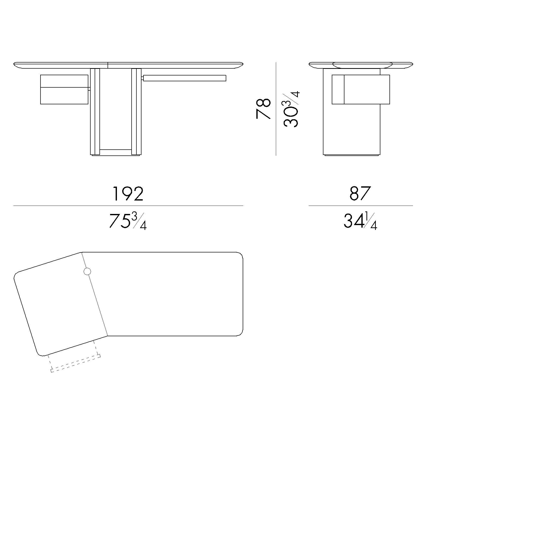 Eclipse writing desk expresses great harmony thanks to its refined lines. The structure presents an unusal design in terms of construction and materials used: two elliptical legs upholstered with leather support an upholstered elegant top while, on the sides of the structure are assembled one shelf on the right and a drawer on the left in ebony wood. Marble table lamp Yale matches really well with this writing desk.