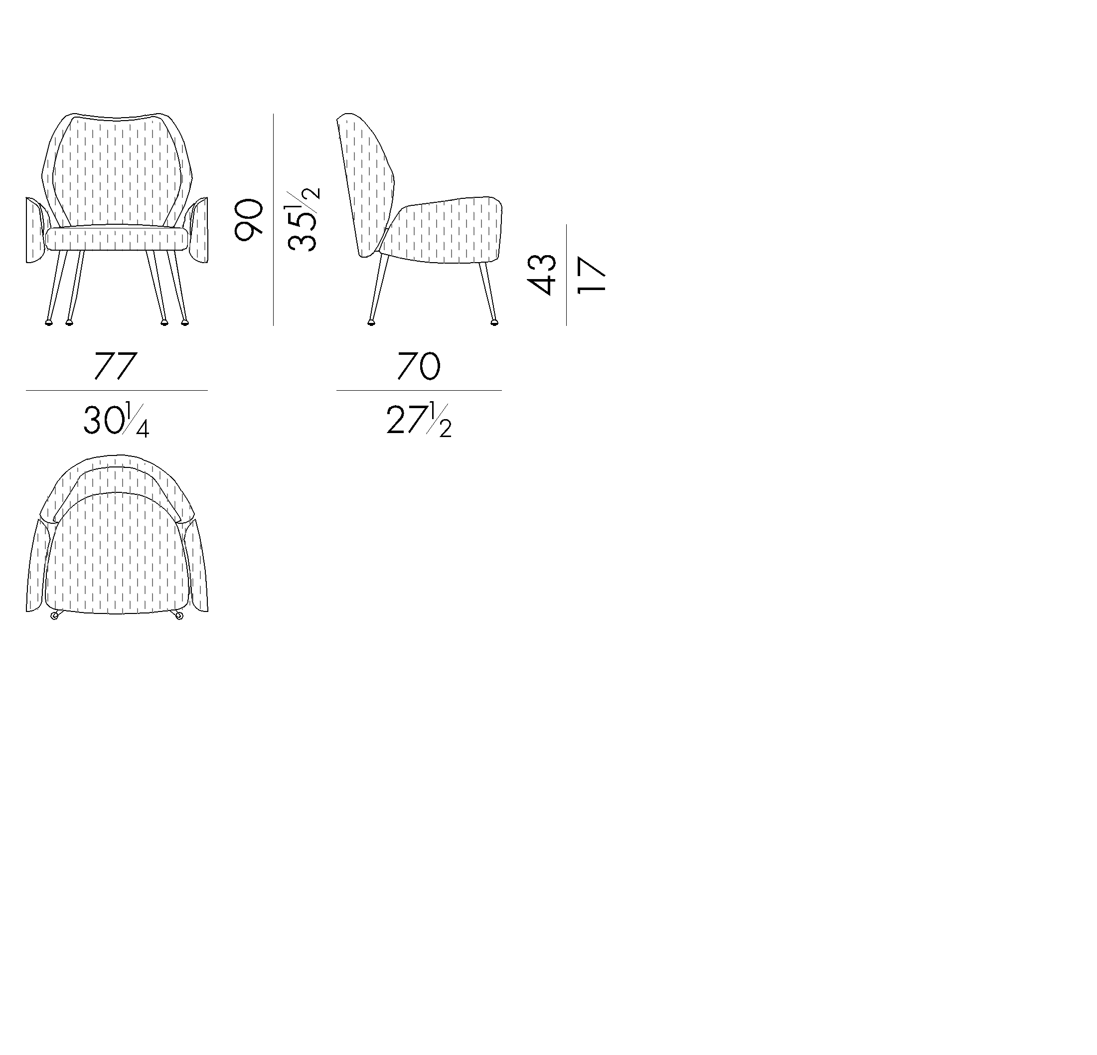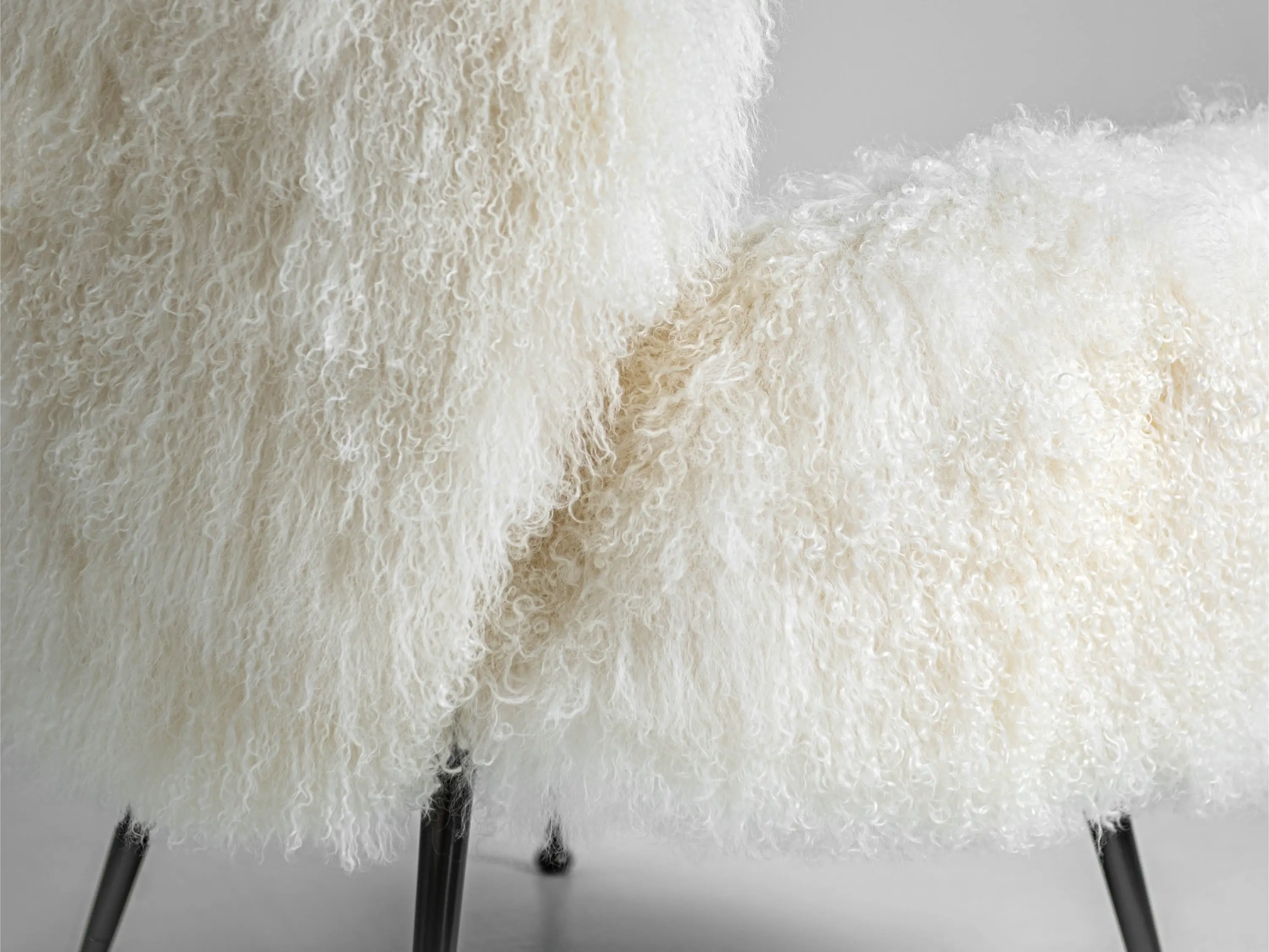 Euphoria armchair represents a perfect example of Fifties style: the backside and armrests that slightly touch the seat, convey a sense of lightness to the entire structure. Available in both leather and fabric, it also comes with a ‘dot’ pattern embroidery, which enhances the three-dimensional effect. In the version with Mongolia fur upholstery, it becomes the undisputed star of the space. The metal finish on the legs can be selected among different options.