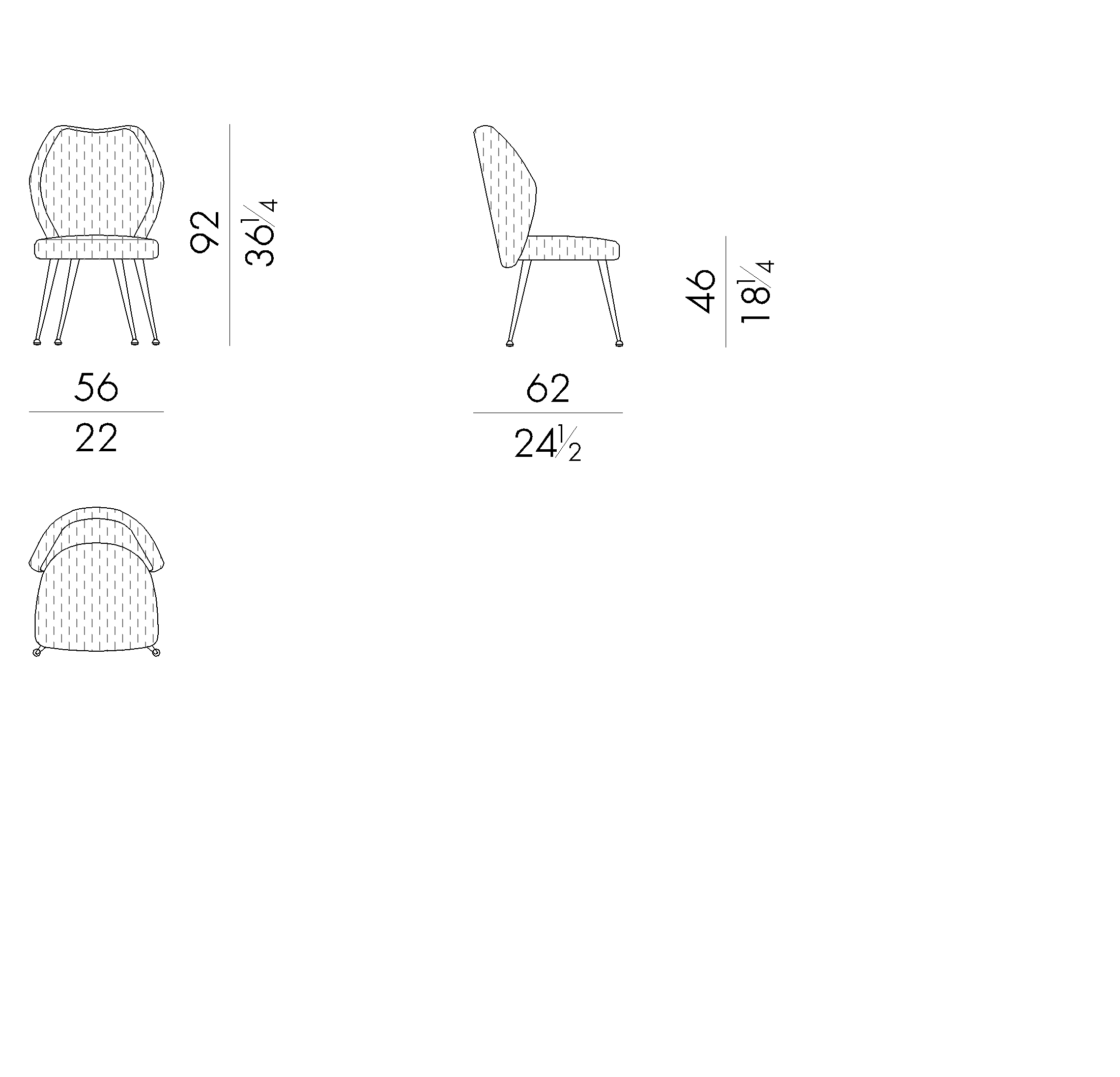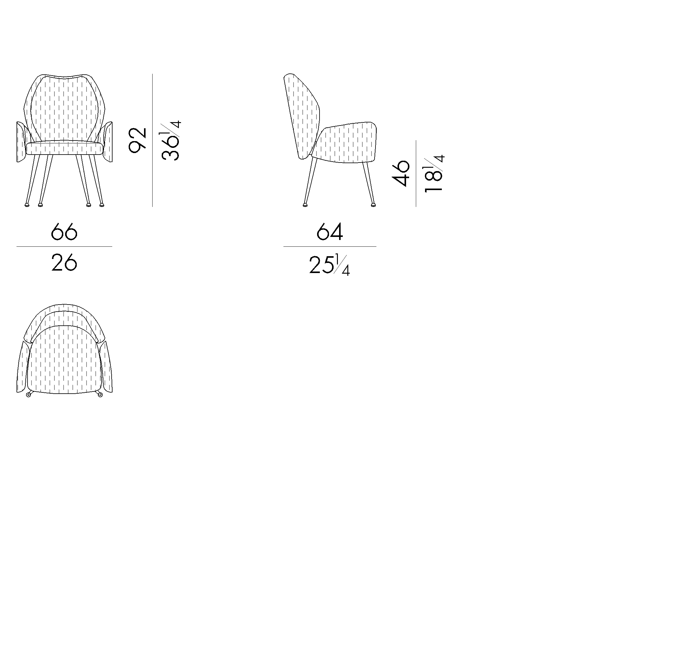 Euphoria chair and armchair represent a perfect example of Fifties style: the backside that slightly touches the seat, conveys a sense of lightness to the entire structure. Available in both leather and fabric, it also comes with a ‘dot’ pattern embroidery, which enhances the three-dimensional effect. The metal finish on the legs can be selected among different options.