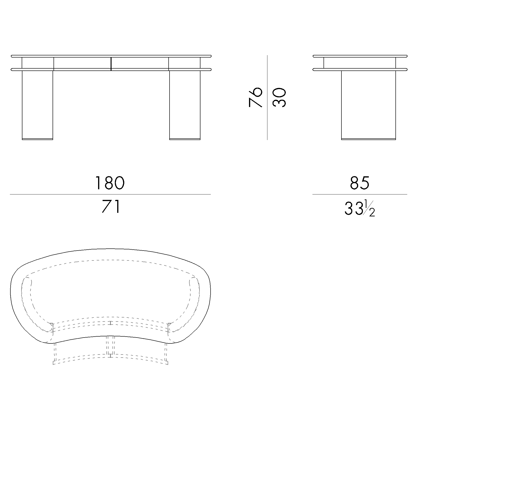 Gister writing desk enchants with its unconventional rounded shape, both in the top and in the legs, creating a fluid and dynamic silhouette that gives personality to each ambience.