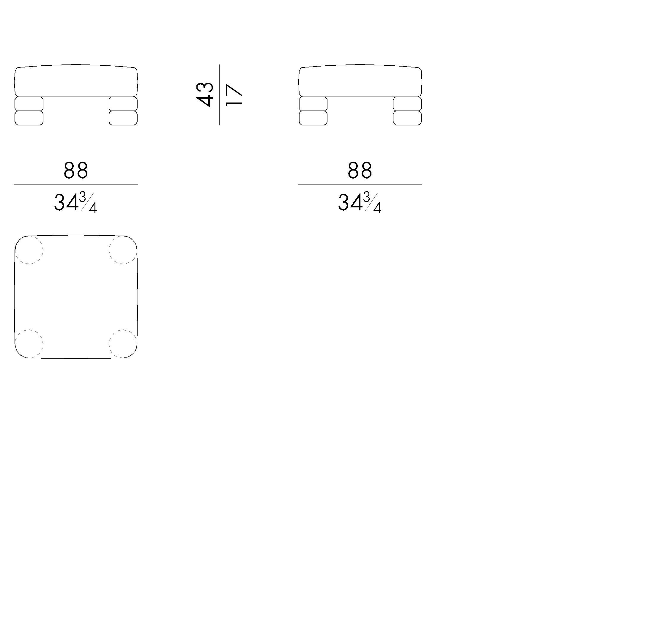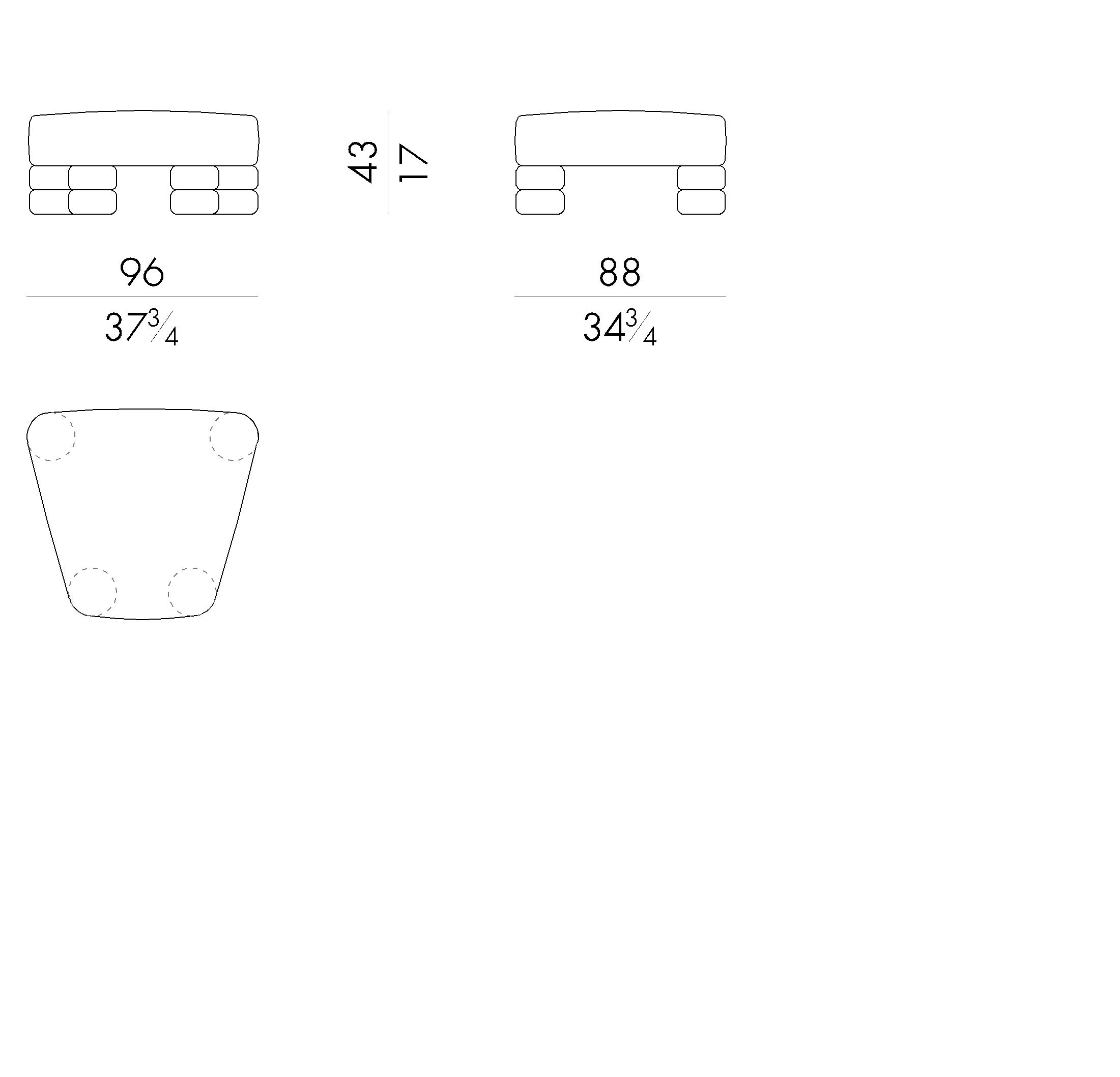 The combination of soft volumes, upholstered in lively outdoor fabrics, gives a cosy and dynamic look, while the design of the base, raised by four cylindrical feet in iroko wood, makes each element independent from the others.