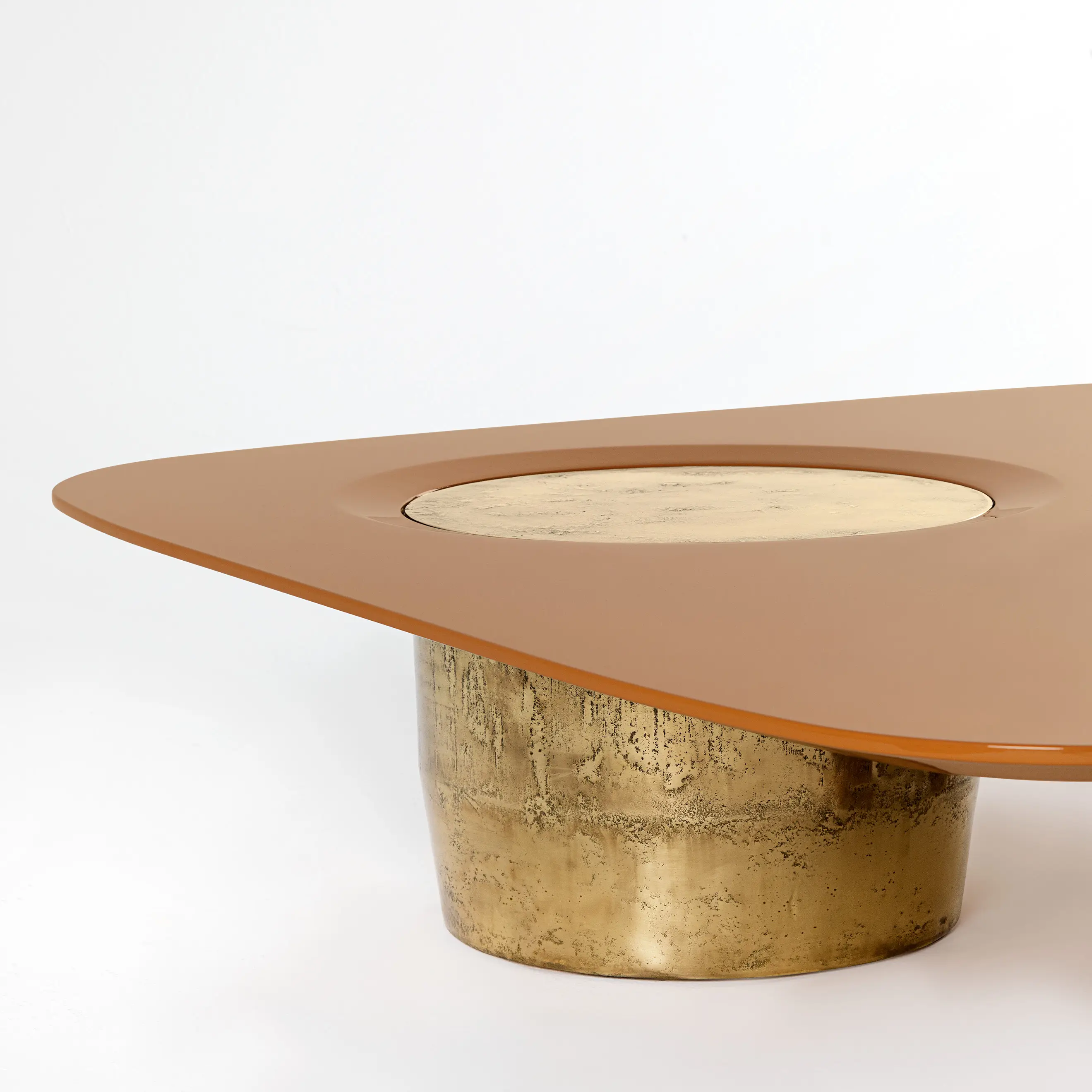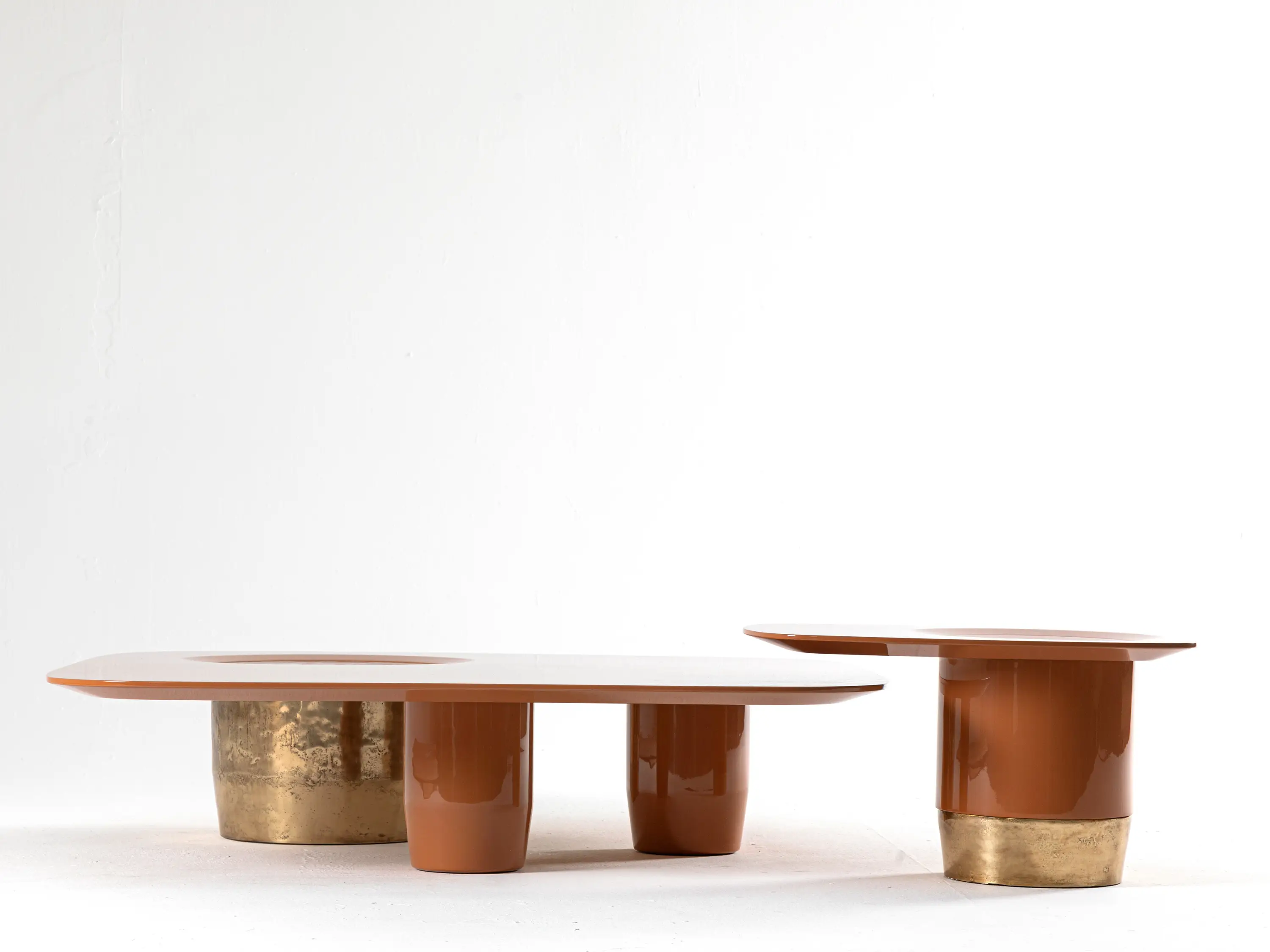 Joss is a sculptural object that fully represents the harmony of duality. For some pieces marble is combined with ash wooden parts while other lacquered parts in bright tones are combined with brass-casting elements. The two materials are drilled in a single point, which becomes the focus of the project.