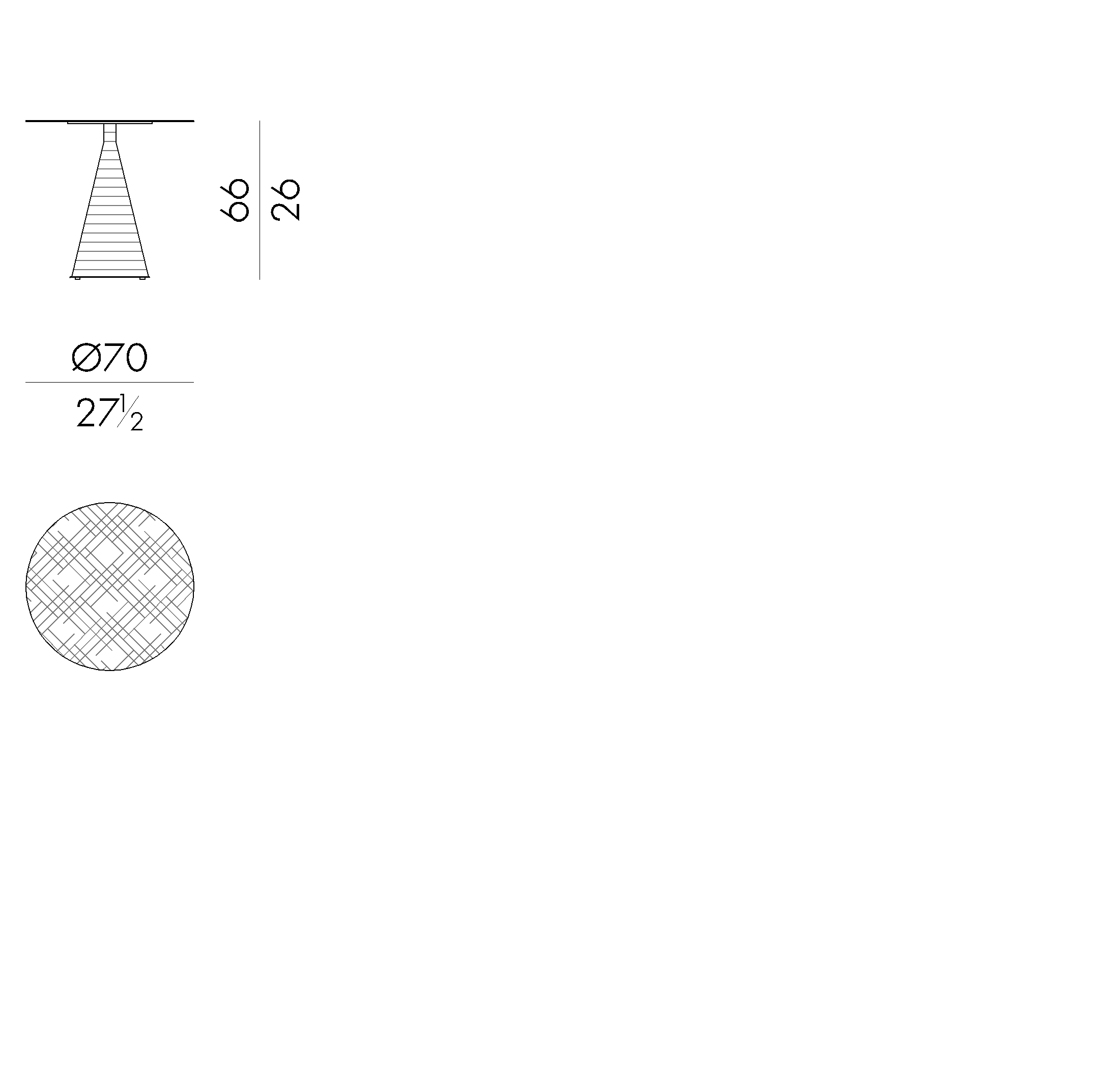 Side table Kevin can be considered a precious element in a living area: its structure is composed by two geometrical figures, a cone for the base and a thin circle element for the top. The metal base is decorated with a modern engraving able to enhance its three-dimensionality while the top is decorated with a refined handmade technique that recalls the manufacture of the Italian jewelry. The height of this piece makes it suitable to be used either as coffee table matched with a couple of armchairs or to be used as a refined side table next to sofas.