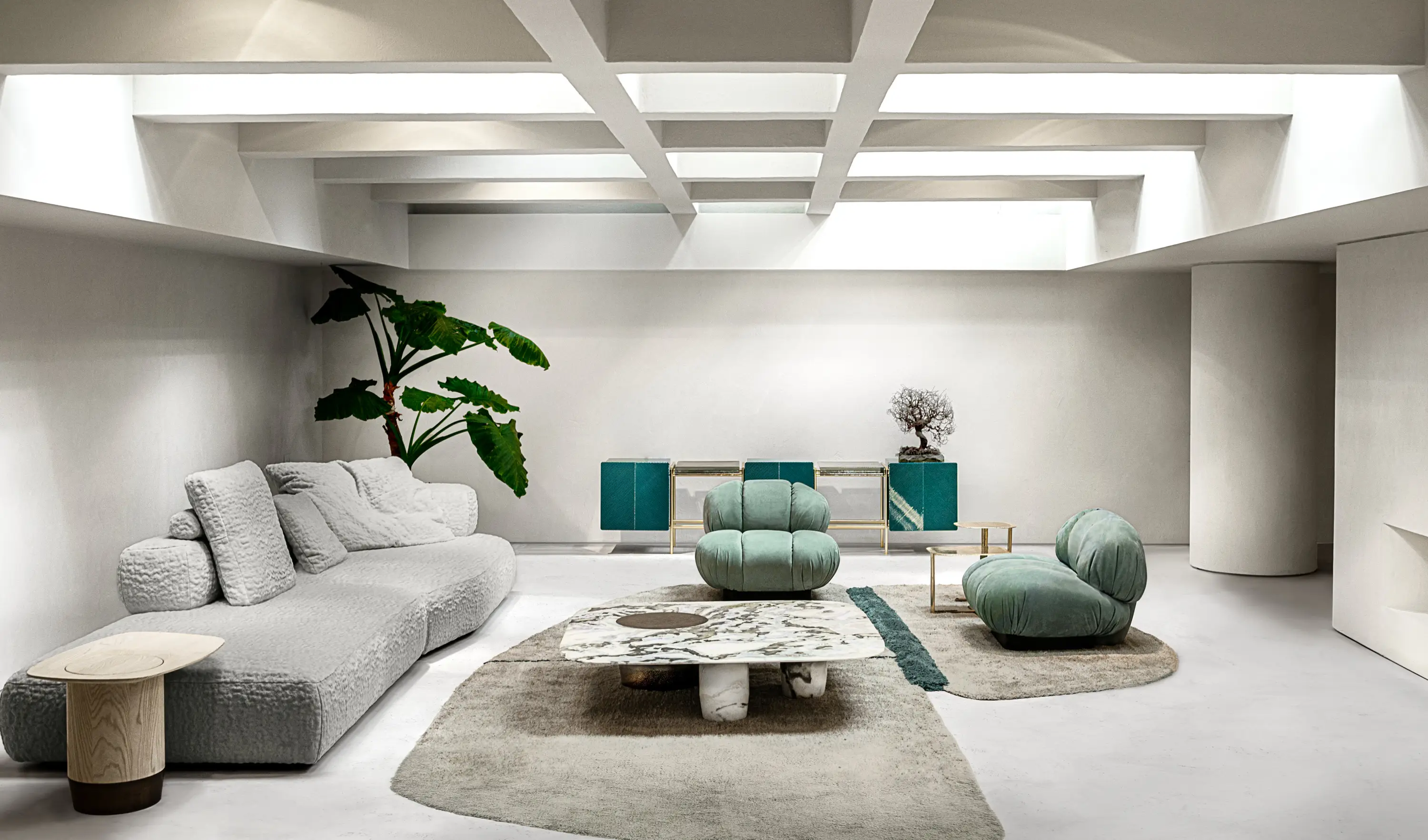 The storage unit Libra is a twist of gold finish metal pipes supporting storage elements and artistic glass shelves. The high craftsmanship emerges from the artistic glass obtained through the casting in plate technique realized by the Master glassmakers of Venice area. The inspiration of storage unit Libra comes from the typical structure of “trabucchi”, small wooden constructions built along the East coast of Italy and used for fishing.