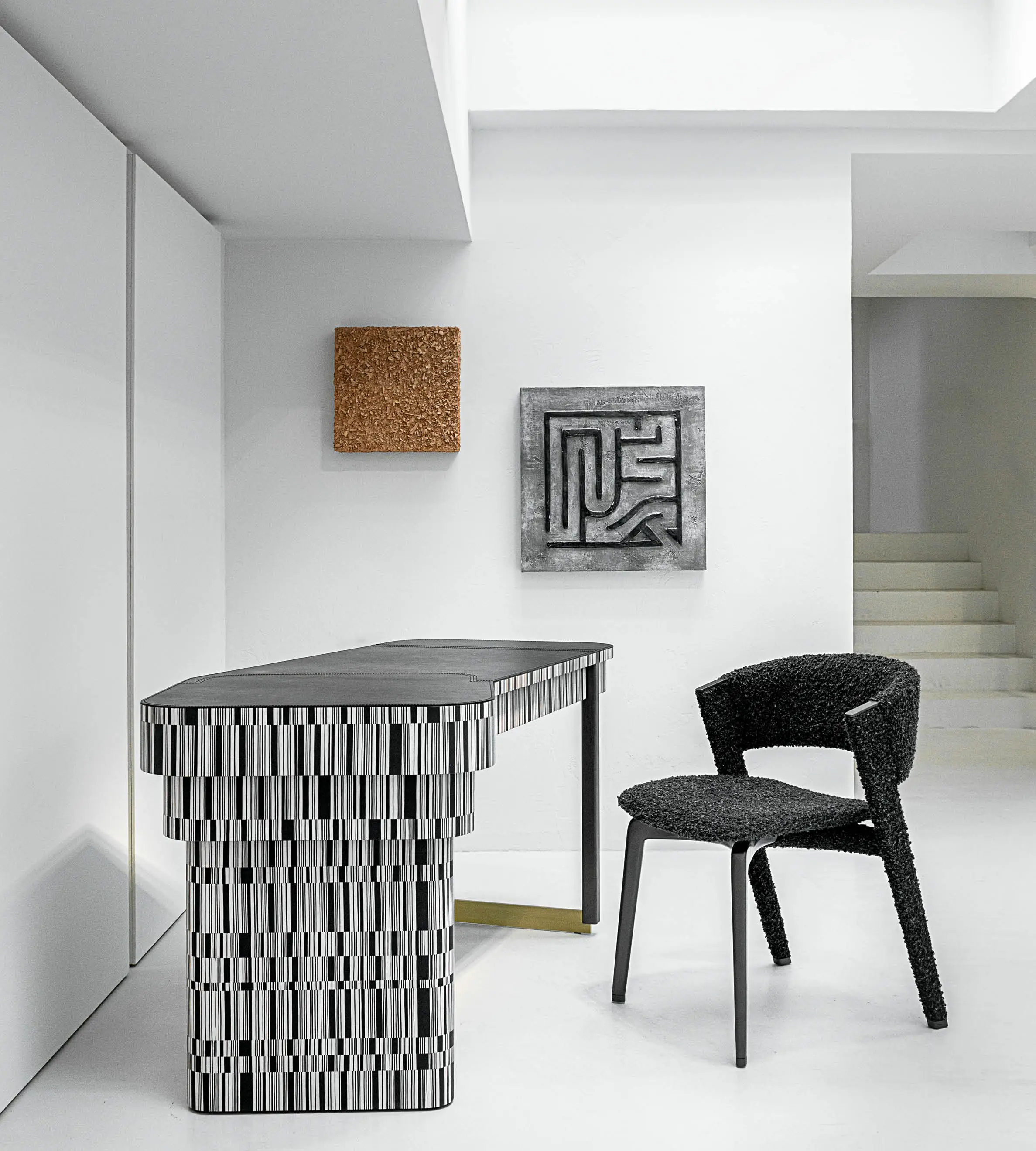 Lisbonaglam chair is an elegant reinterpretation of the iconic Lisbona chair. Characterised by a minimalist design, its proportions and shape ensure maximum comfort. Lisbonaglam was designed with the intention of enhance the uniform monochromy between fabric, lacquered wooden legs and metal details.