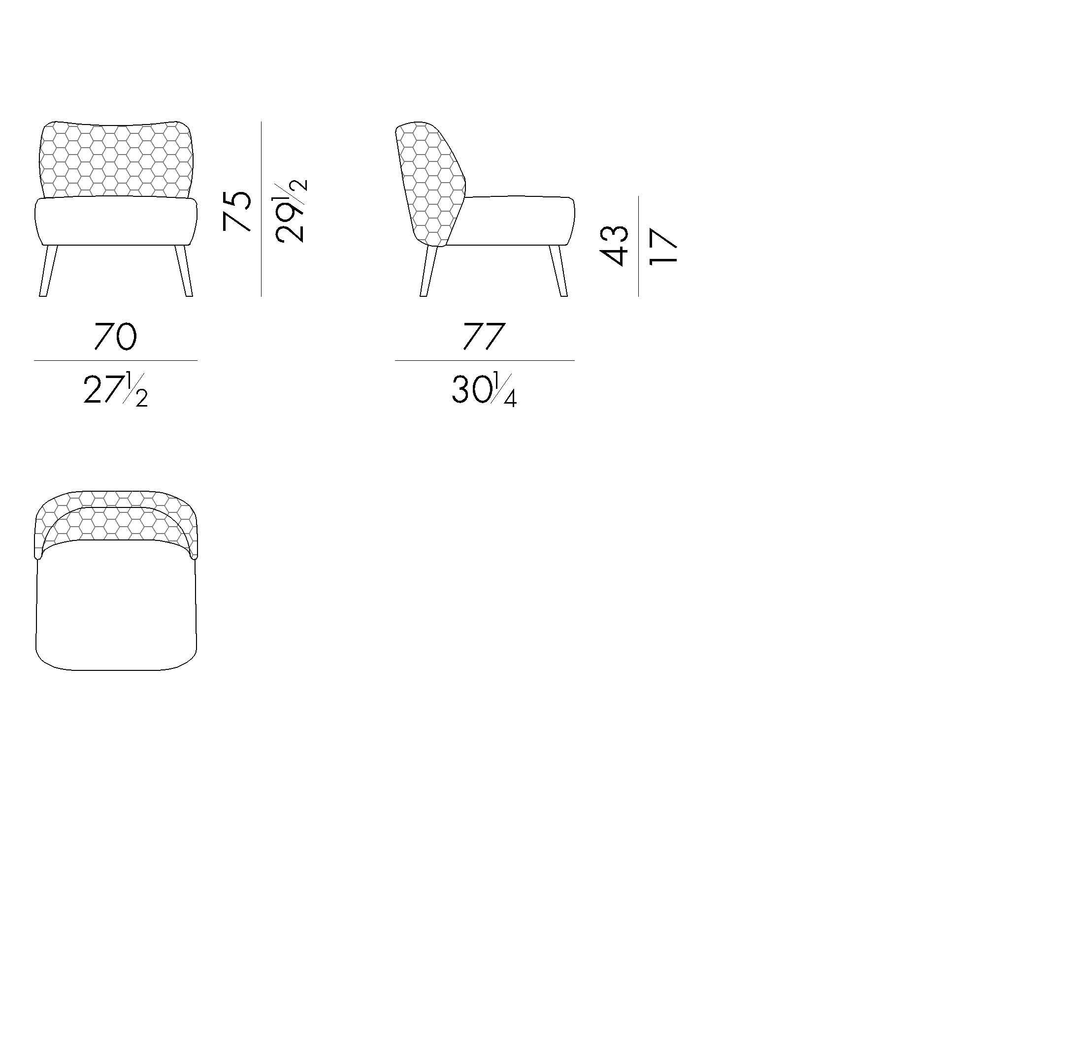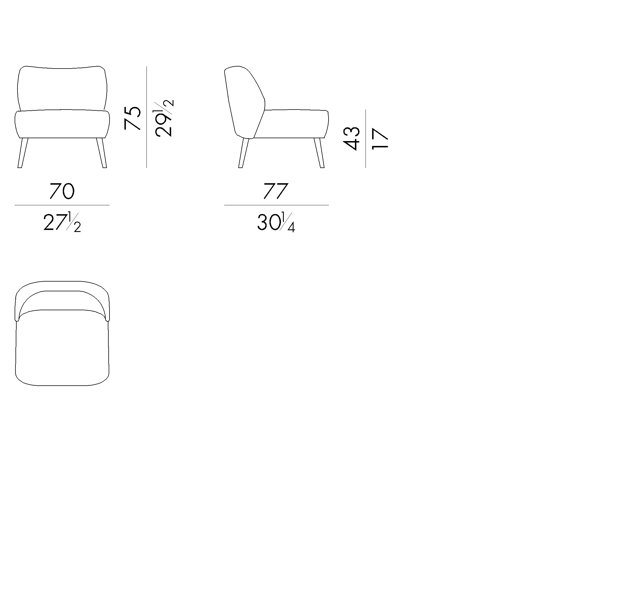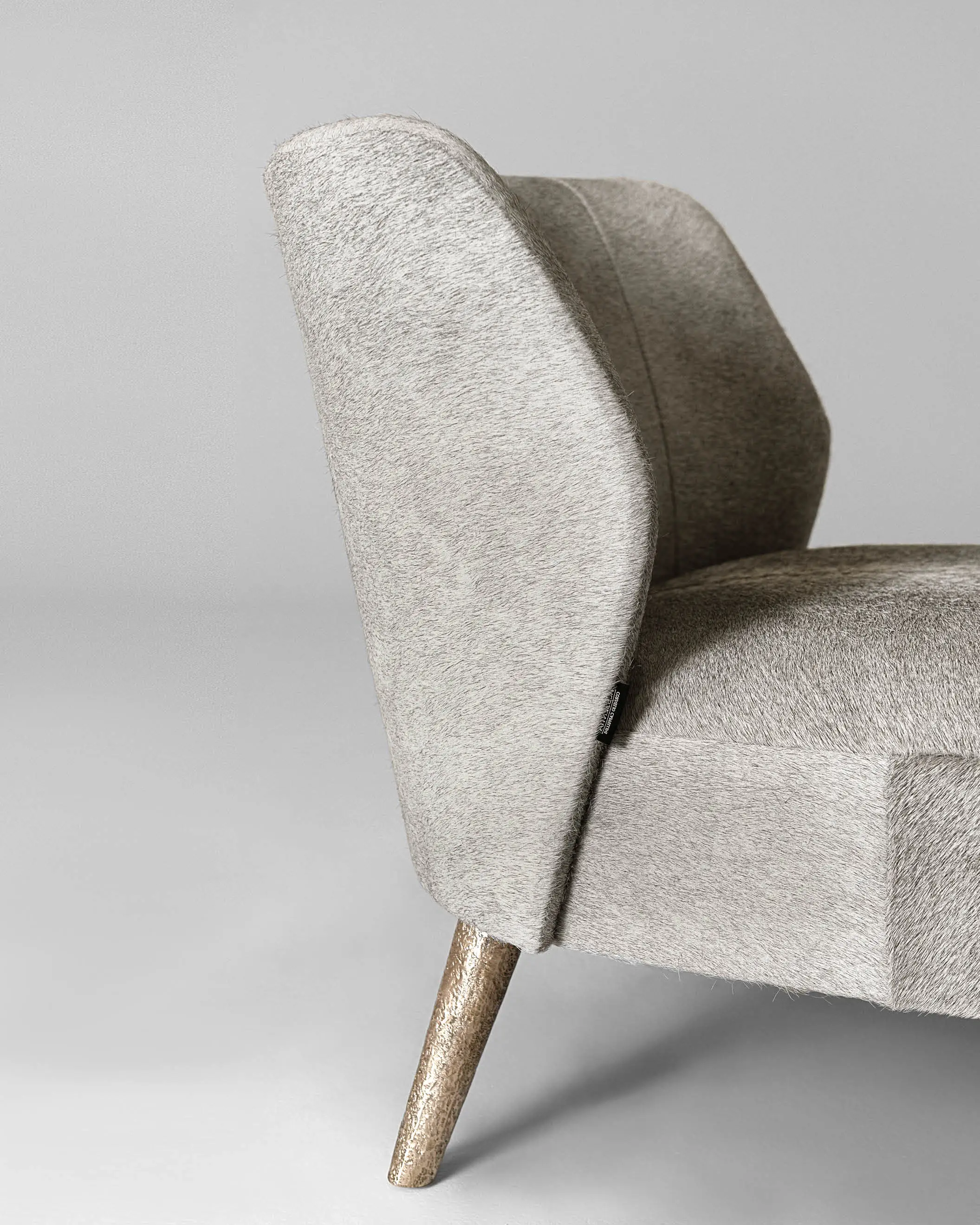Marilou armchair has an enveloping and comfortable shape. The bronze metal legs are realized with the ancient sand casting technique that conveys an artistic touch to the armchair.