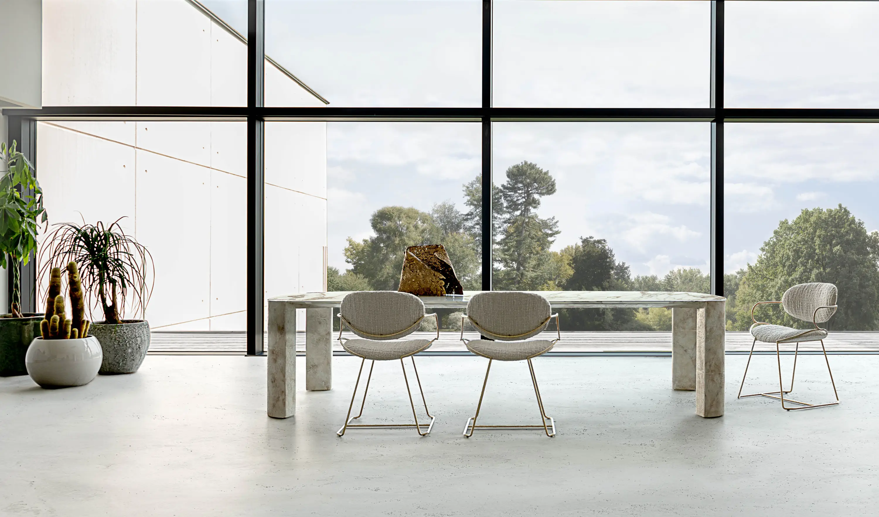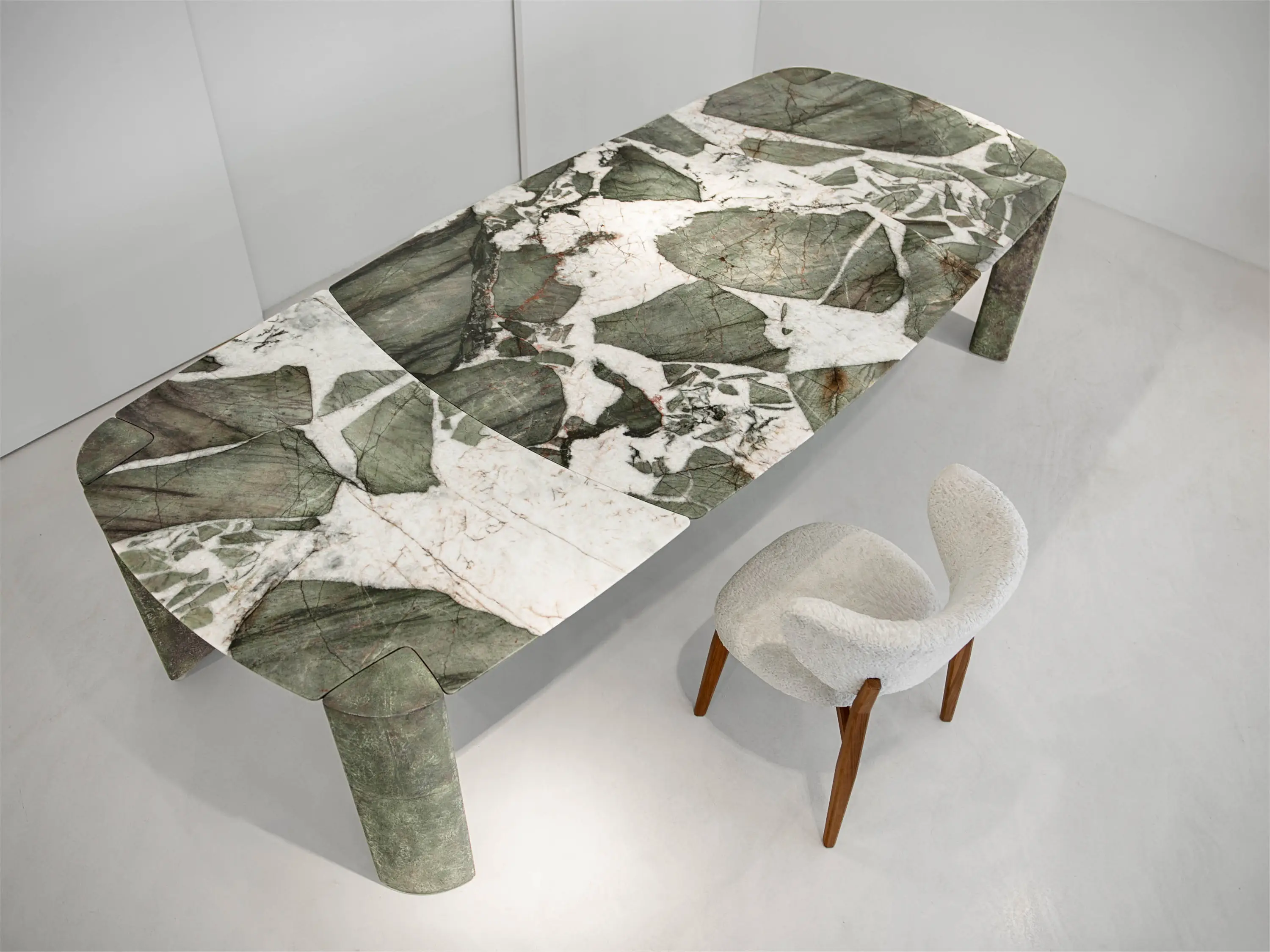 The table Meraki perfectly blends aesthetics, functionality and technical innovation. The four fibreglass legs join the marble top completing its shape. Designed to adapt to different space needs, Meraki is available also in a round version suitable to many ambiances and styles. The finish of the fiberglass surfaces, obtained through a refined artistic technique performed by hand, adds personality to each table, making every piece unique and unrepeatable.