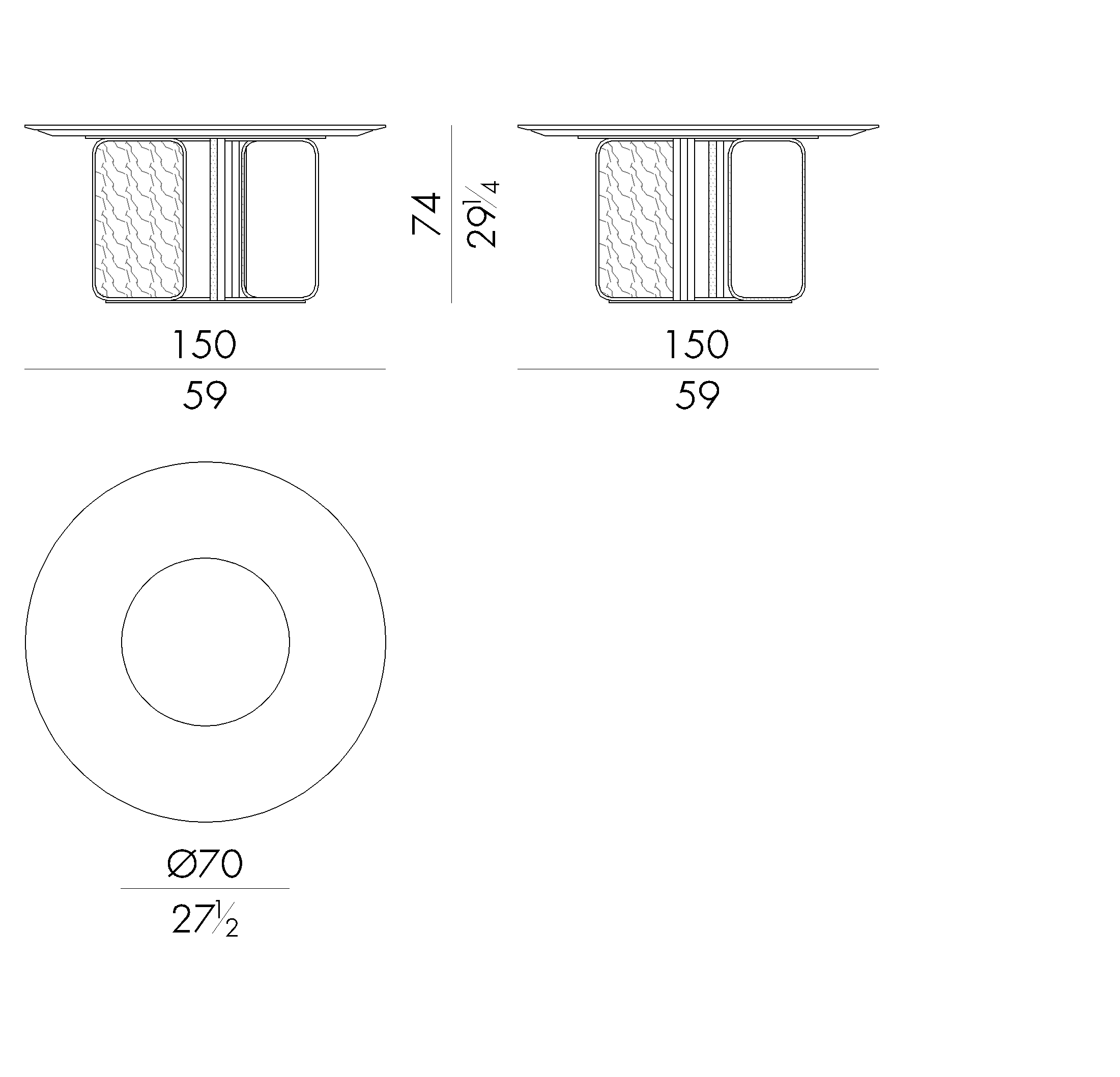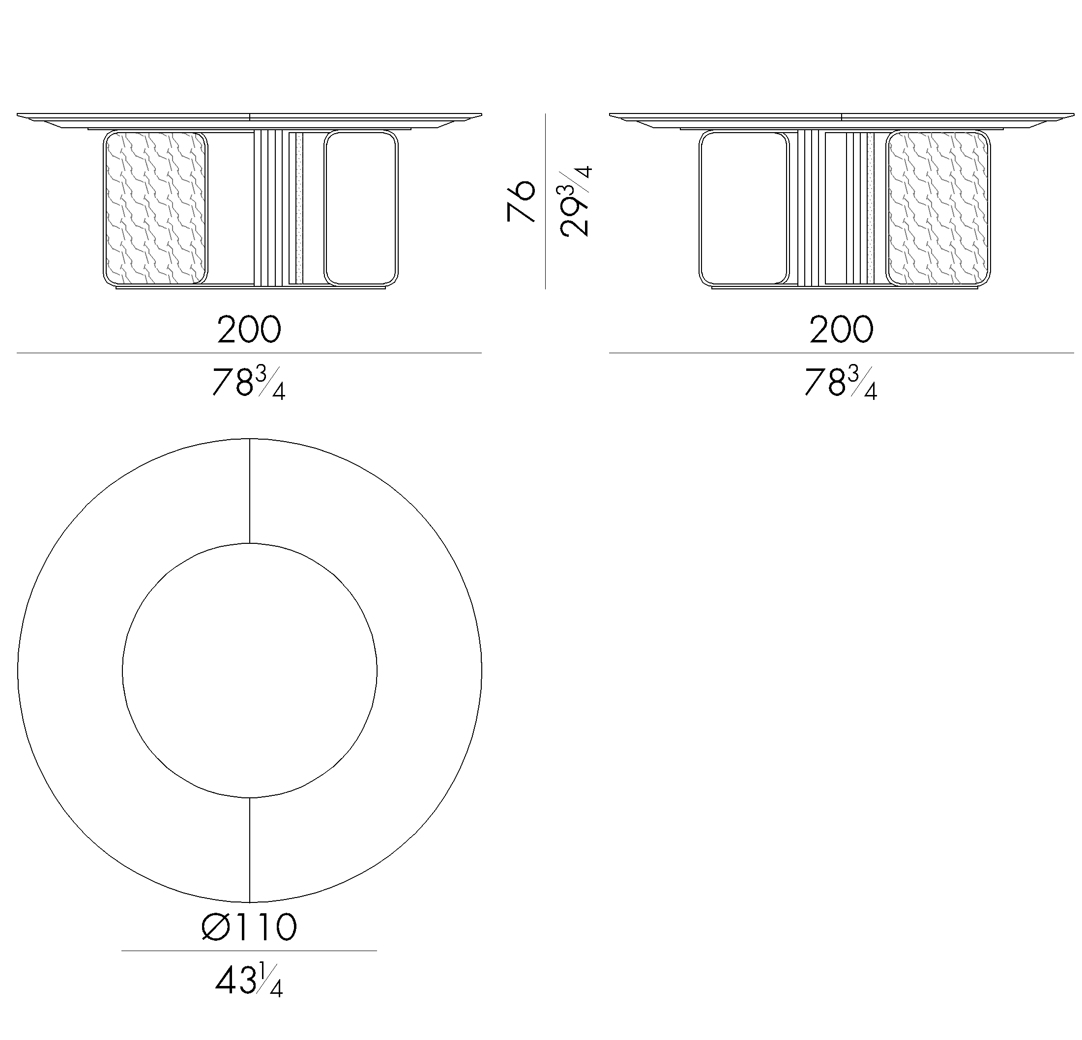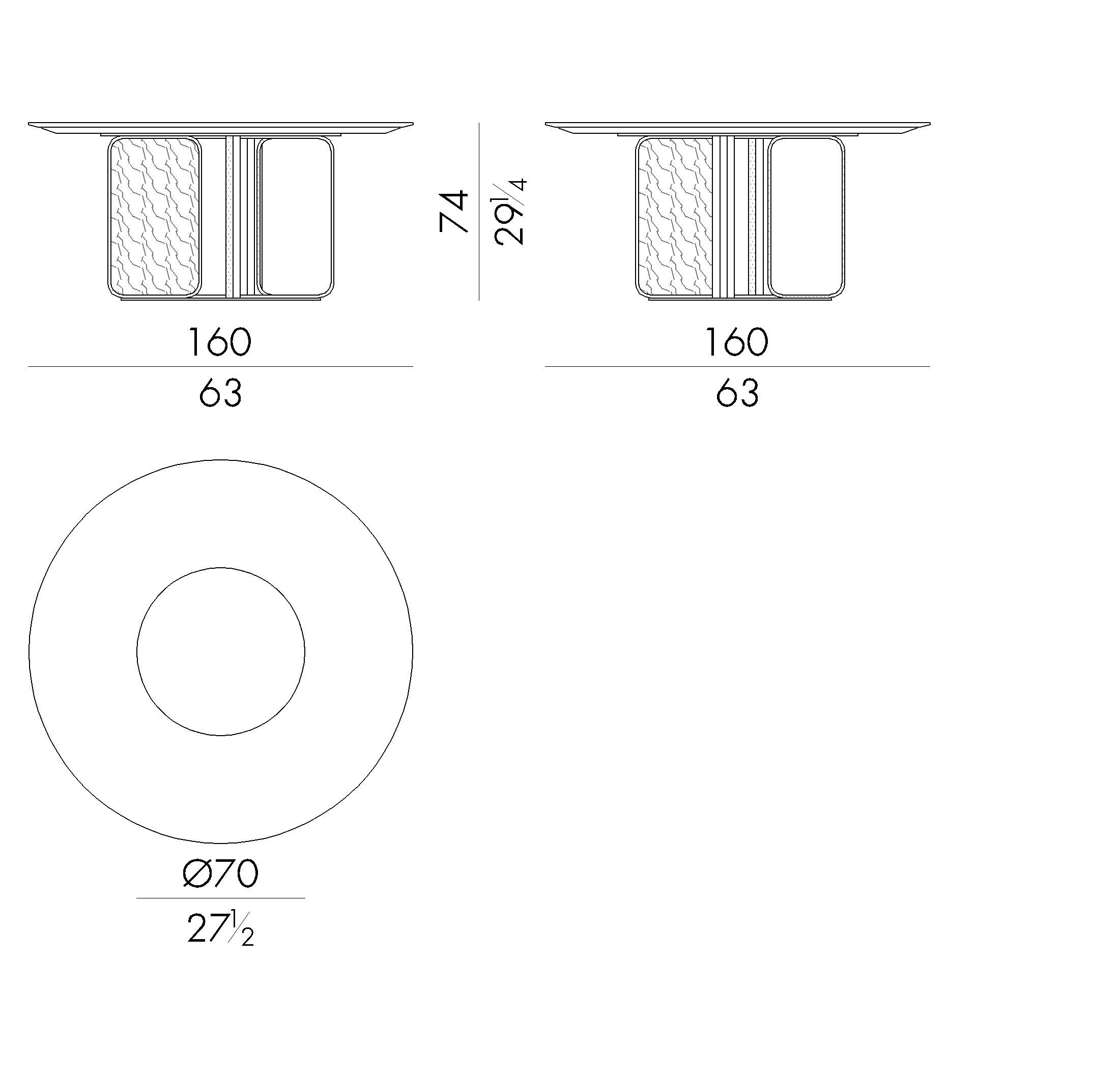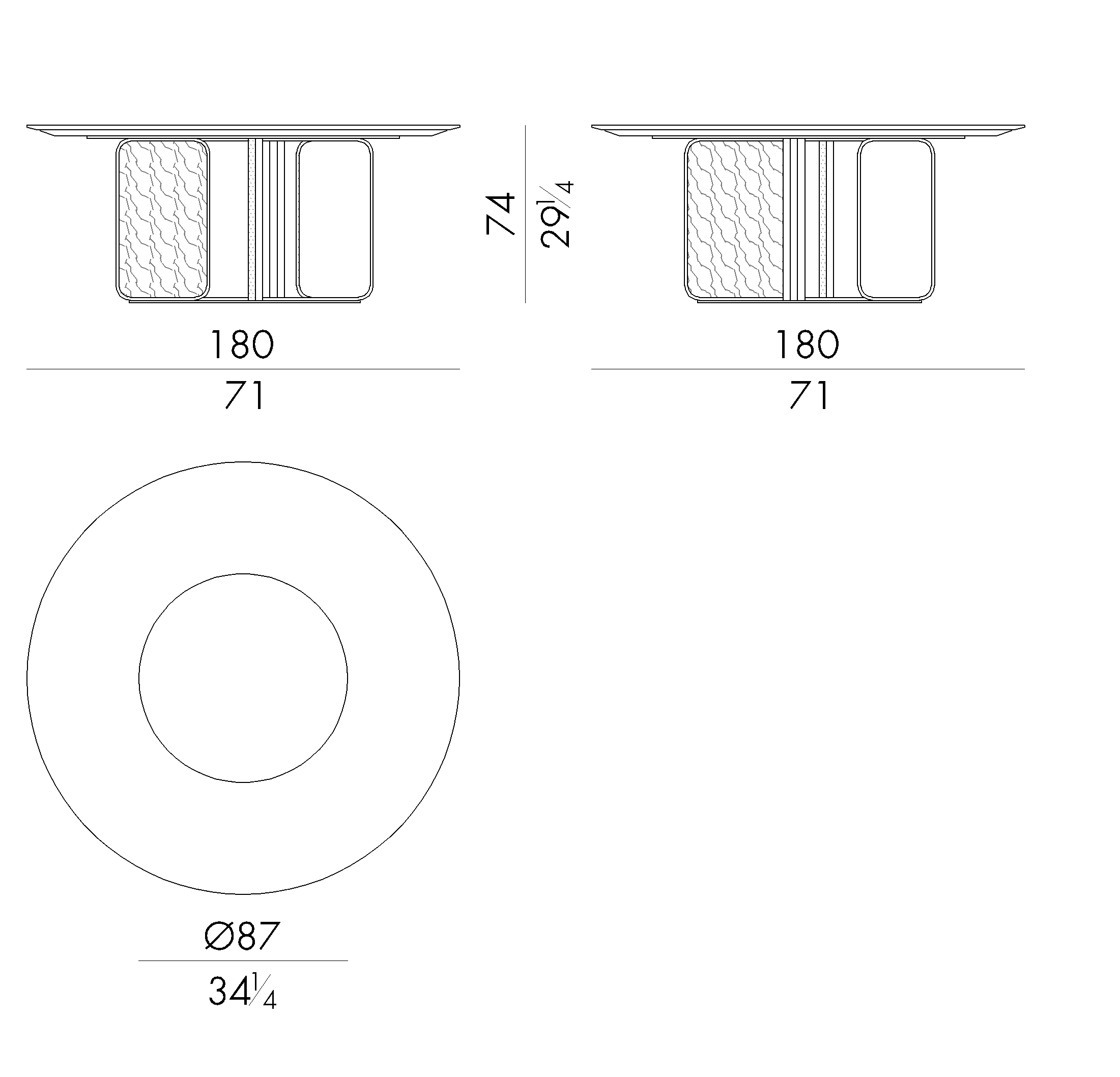 The uniqueness of round tables Nova is represented by the brass base that envelops the marble slabs like a ribbon, enhancing the natural veins of the stone. The metal parts, that are shaped in a very precious way, are proposed both in shiny and matt finishes and some of them are decorated by hand with a refined three-dimensional effect. Besides the round table, that can be selected with lazy susan, exists also the rectangular version.