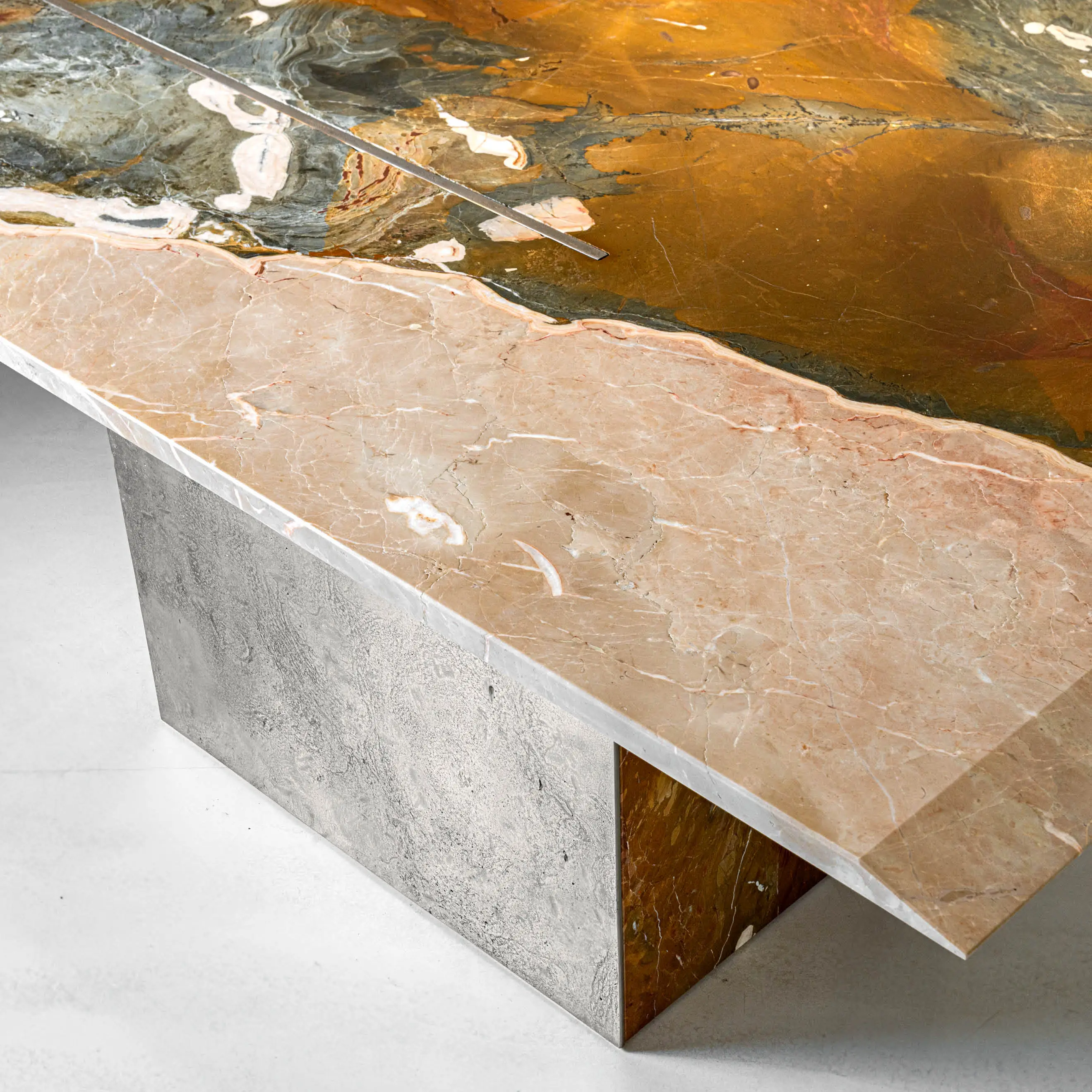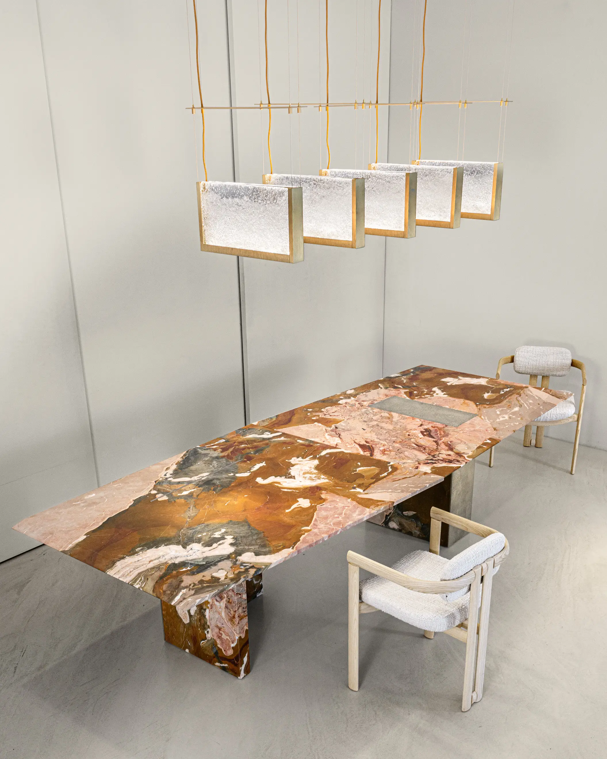 Opus is a table with a minimalist design, which shows perfect harmony between marble and metal obtained through the traditional sand-casting technique. It embodies the balance between pure forms and refined materials, an expression of Hessentia's Italian craftsmanship excellence.