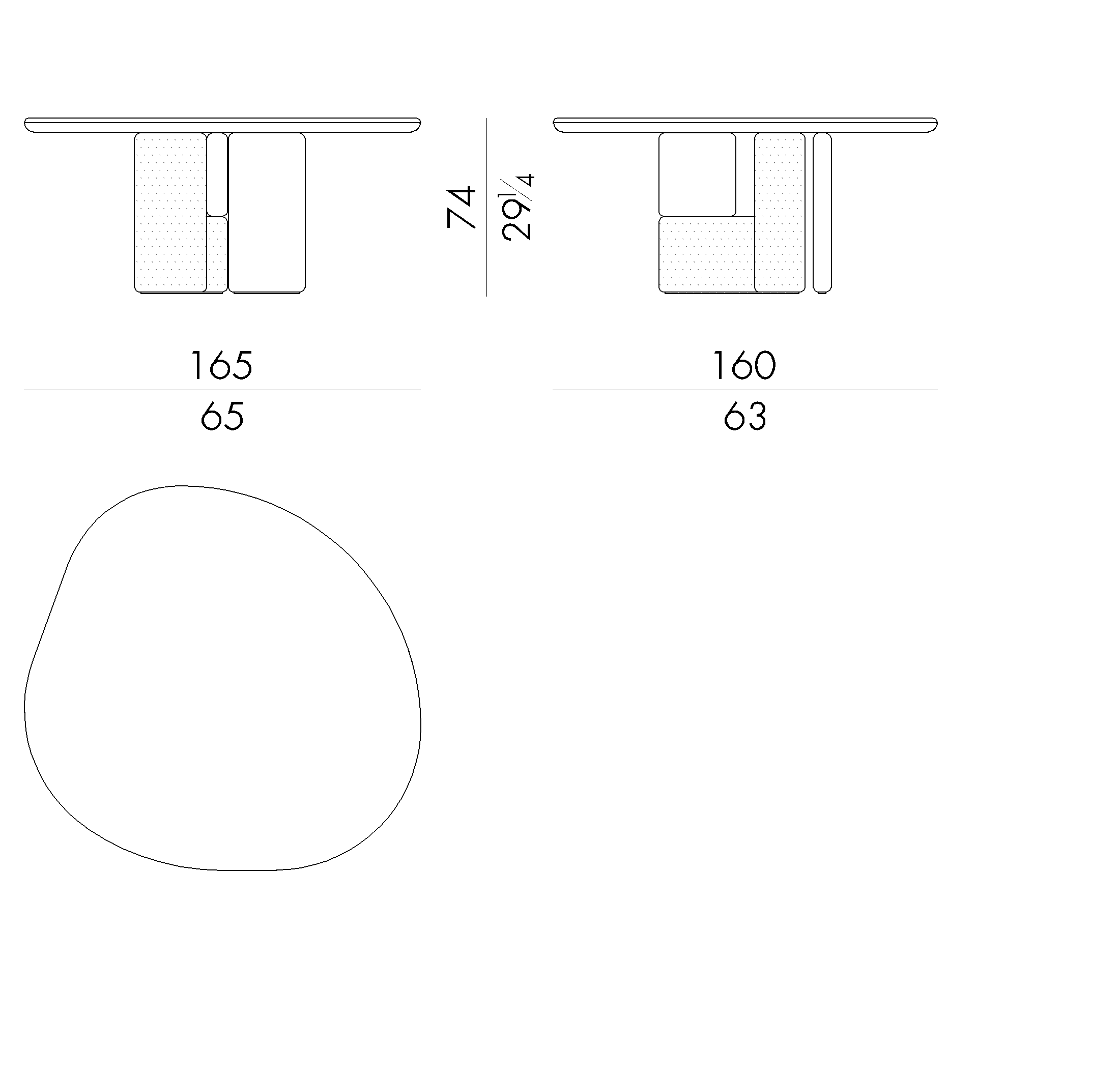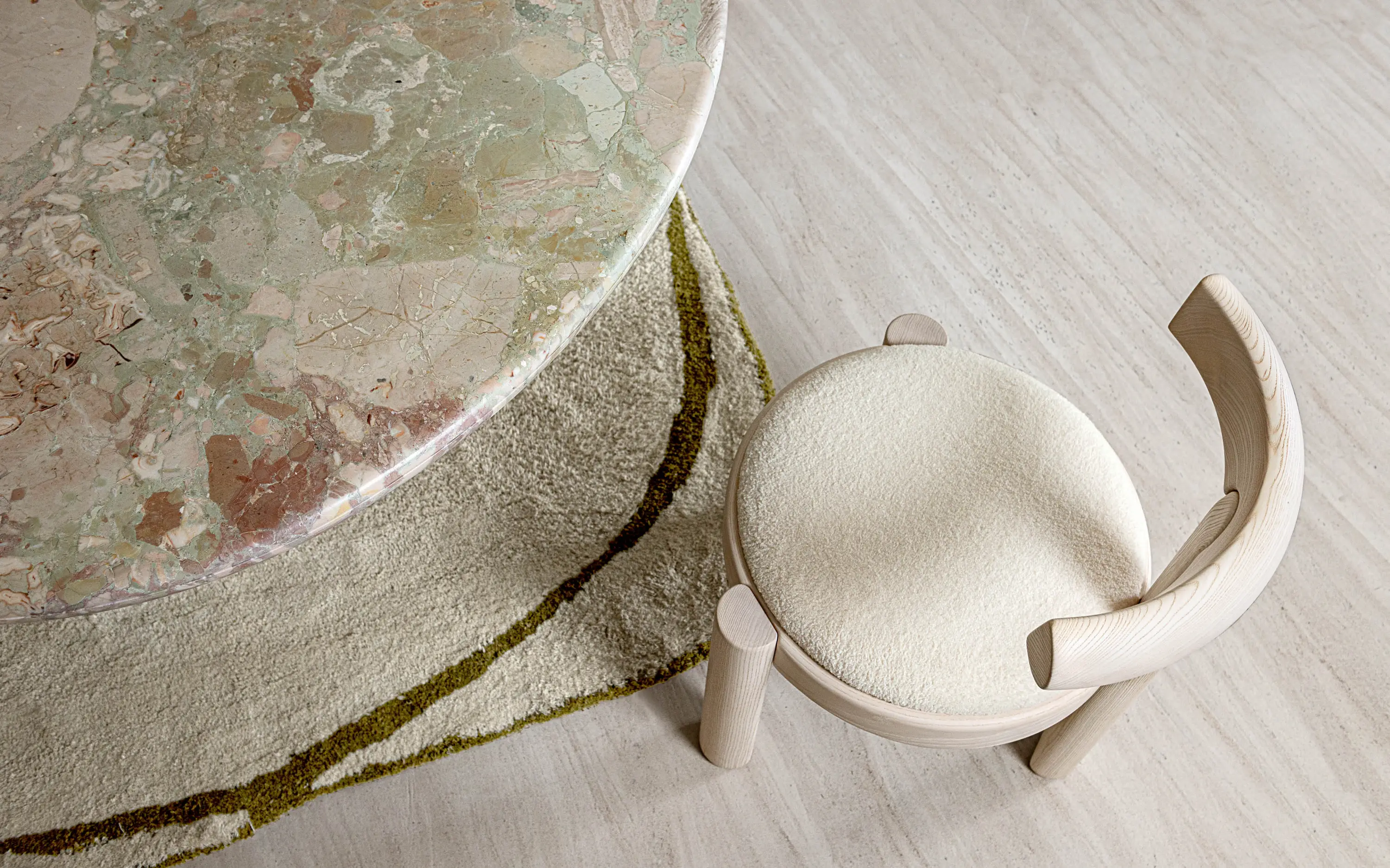 The Ovoo table tells stories of faraway lands, belonging to the shamanic cult typical of Mongolia. The inspiration of this collection is the concept of “ovoo”: the piles of stones used as reference points at the top of the mountains, were in fact the inspiration for the overlapping of lacquered or ash wooden components combined with other elements in patina brass casting. The version made of Ceppo romano marble is a real masterpiece.