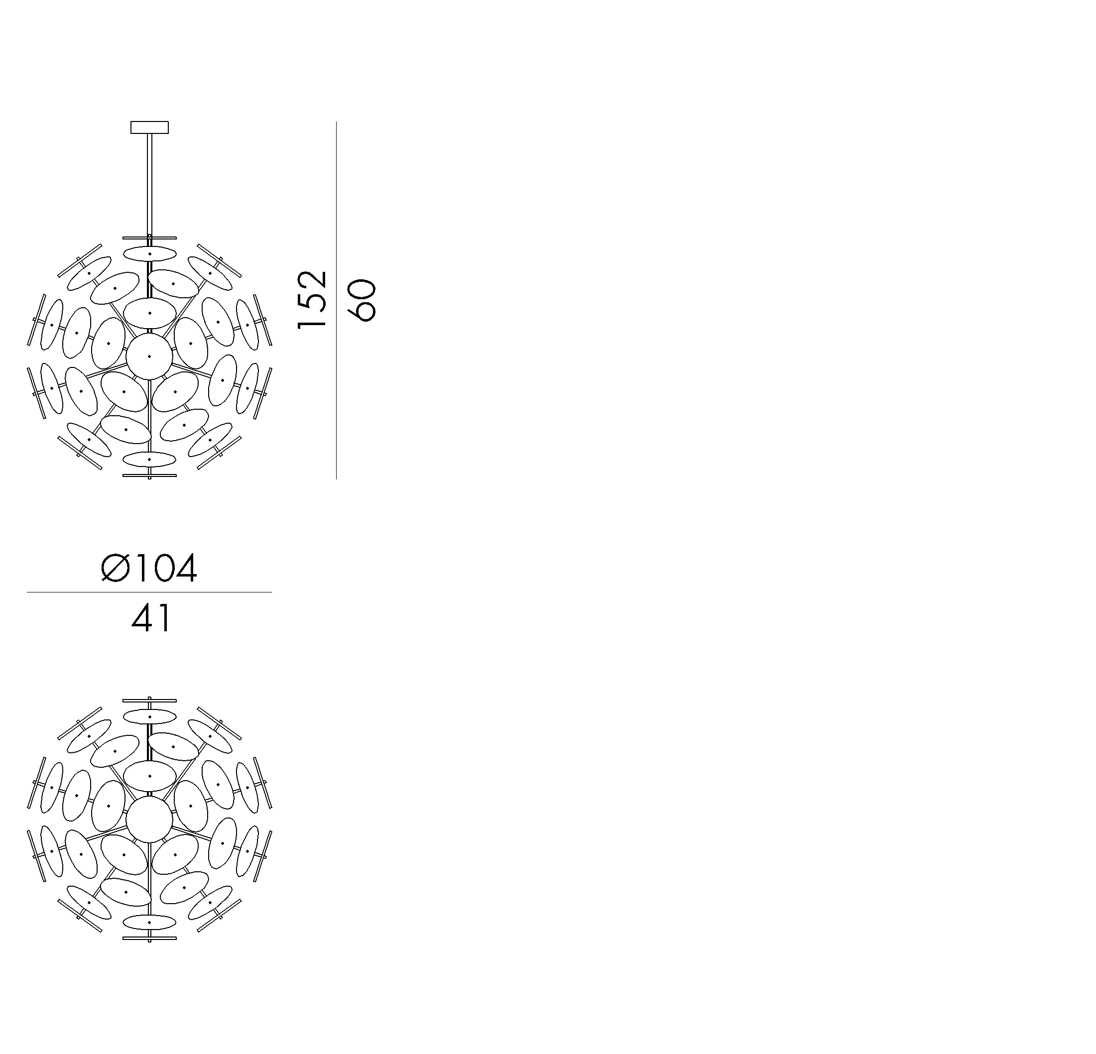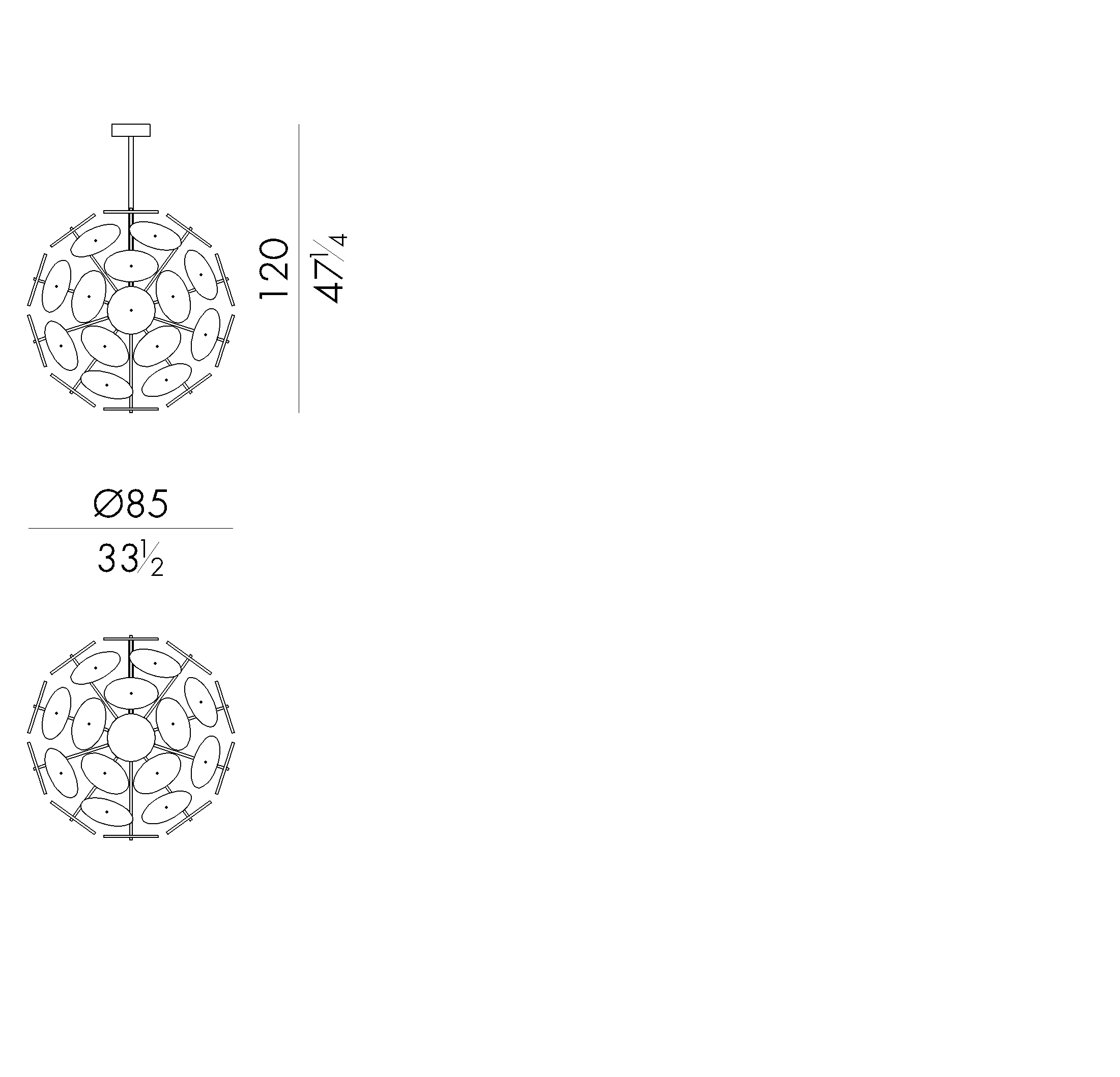 Richmond chandelier has been designed to astonish the customers: from a central metal sphere come out thin metal bars that support handmade glass petals realized by master glassmakers from Venice area. A traditional glass technique creates bubbles inside the petals which are able to spread beautiful light reflections. The glass is available in gold or in blue colour.