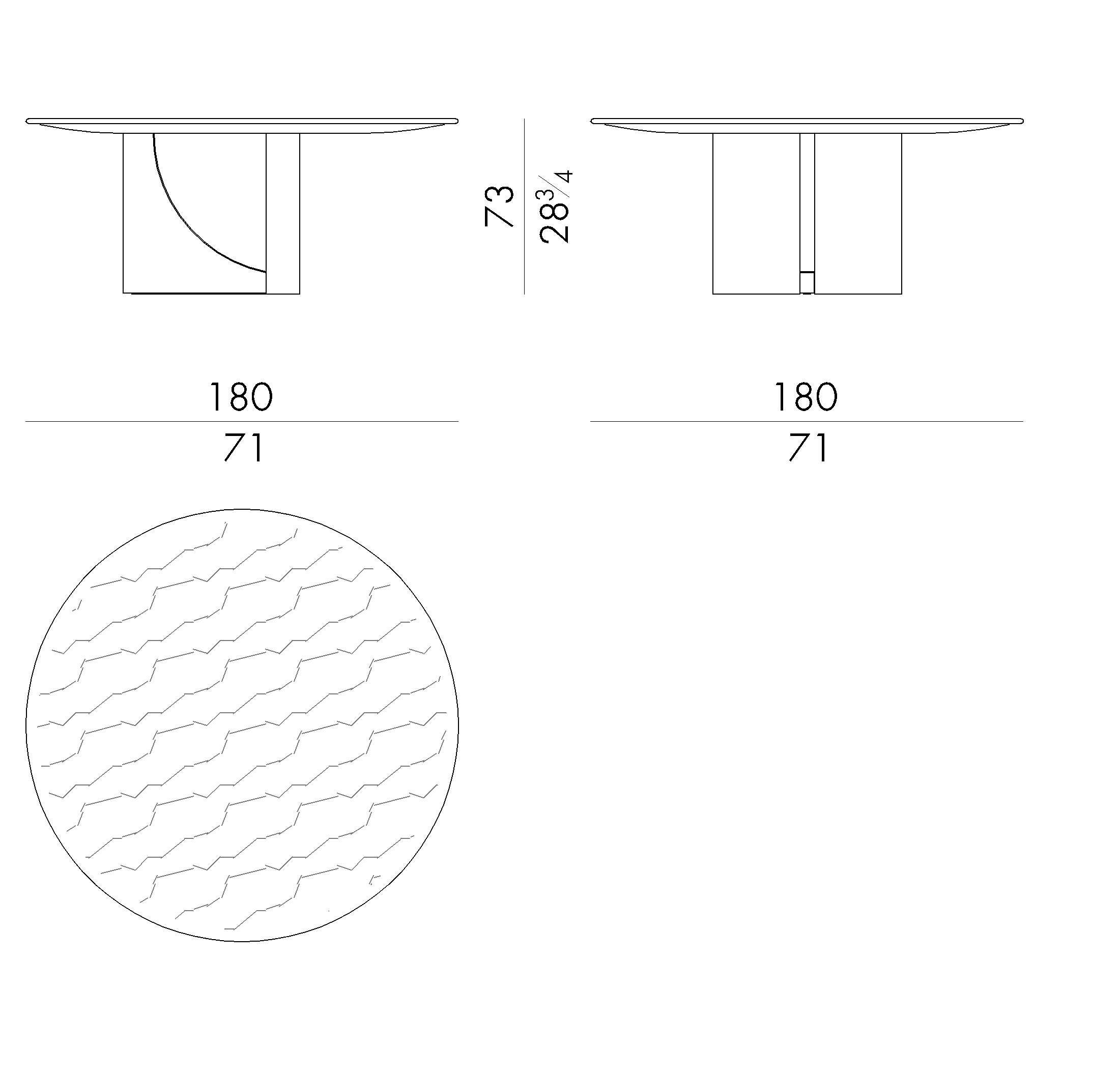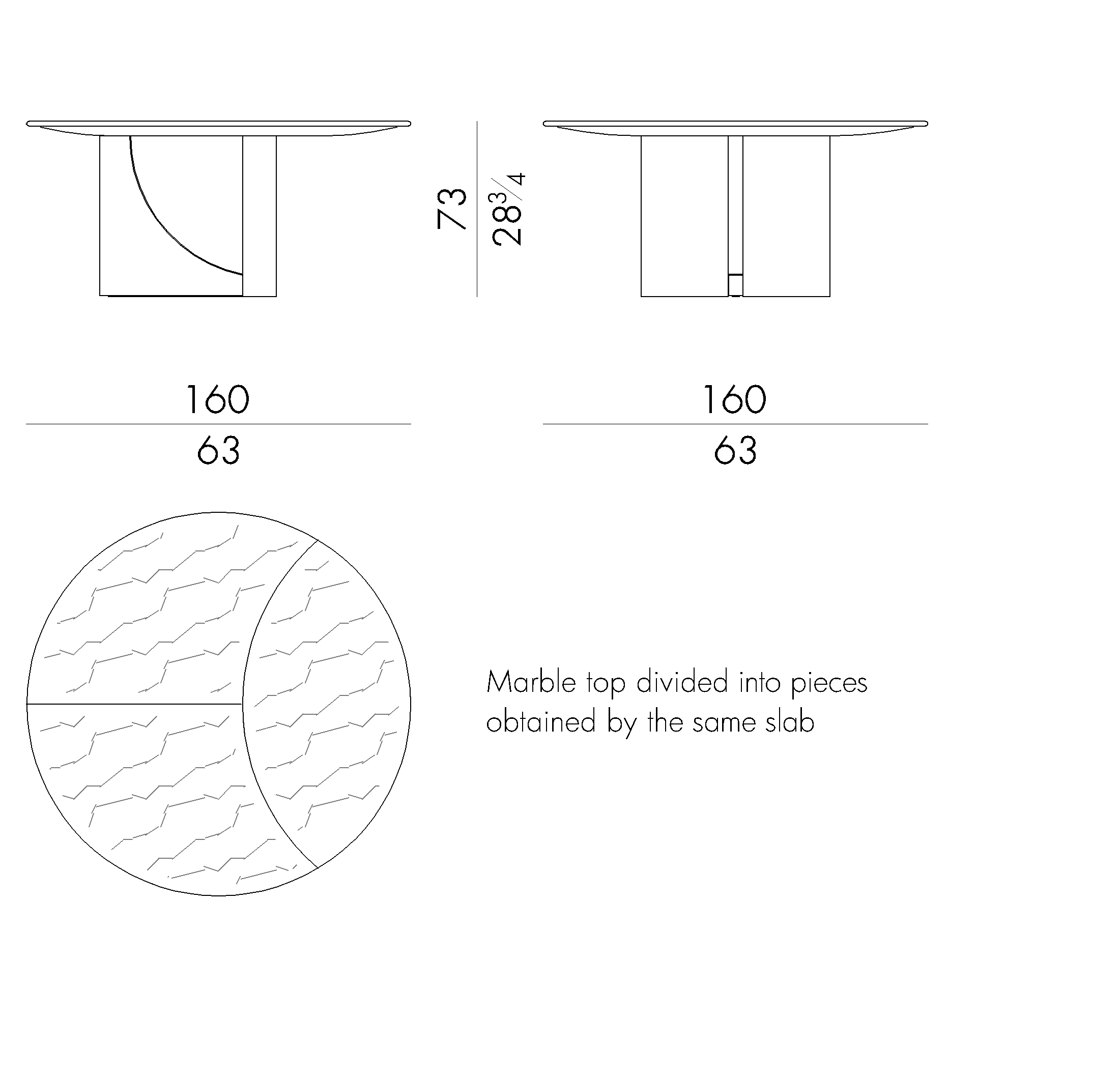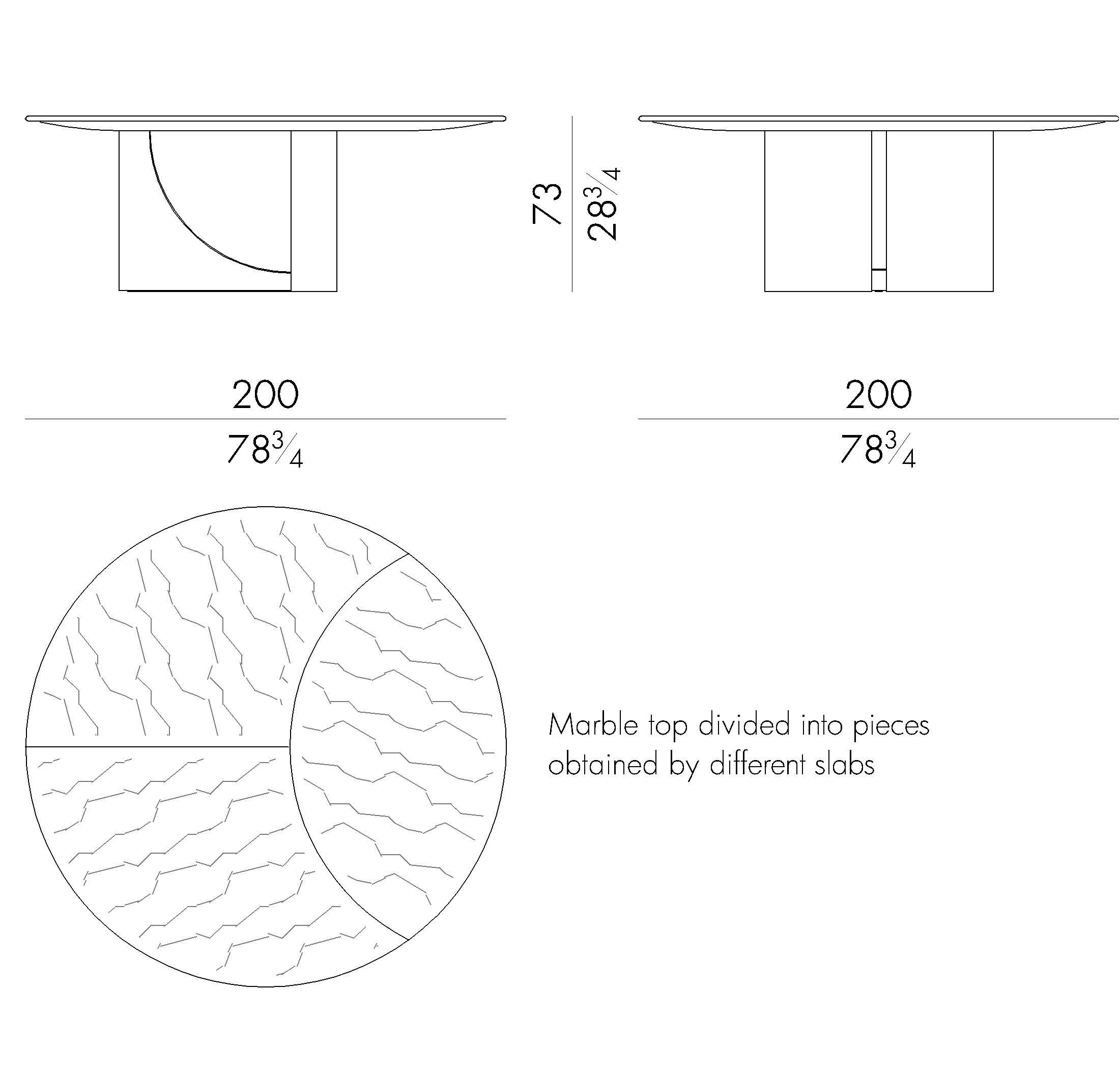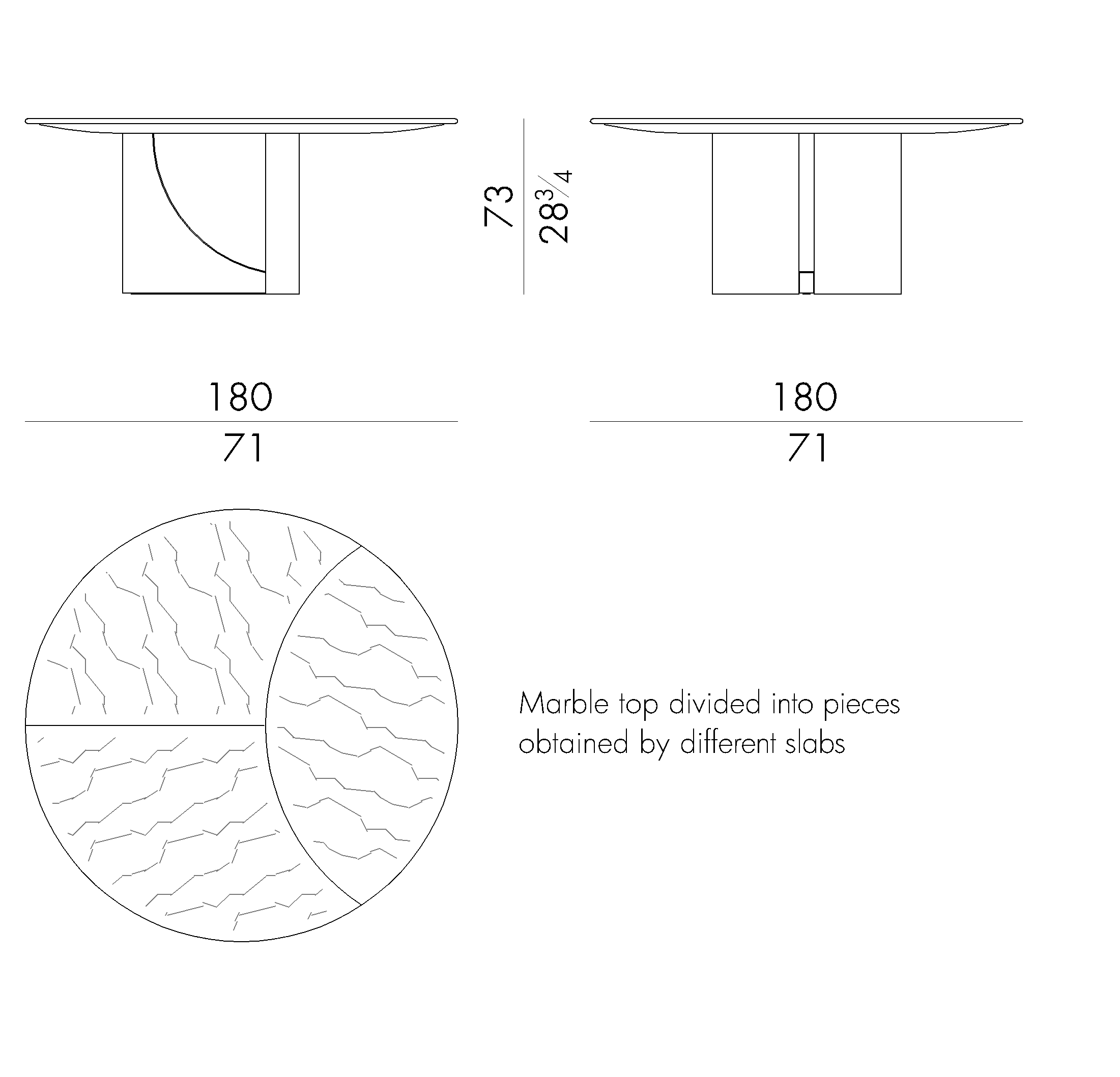 The shapes of dining table Spinnaker take inspiration from elegance and lightness of the sails of the boats that are unfurled to the wind during the sailing. The marble top is available in one unique piece or it can be cut into three curved parts following the structural base with two arches that recall the typical geometry of architecture of the Thirties. The melted bronze parts of the base are realized by casting liquid metal into a mold made of special sand.