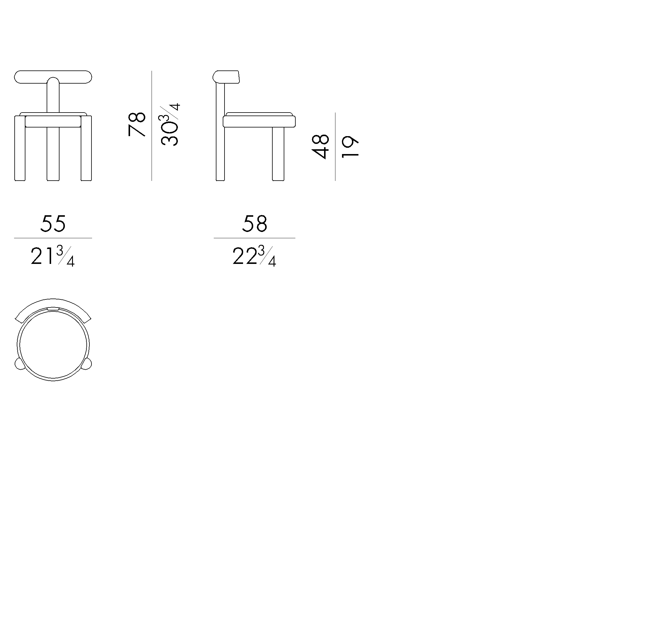 Tita is characterized by essential circular shapes and it’s available in different versions. Tita is a chair with a refined look able to get the attention of people thanks also to its enveloping shape. The characteristic of this product is that the padded seat is supported by three legs with beveled corners, one of which is higher than the others becoming the support for the curved backrest. Tita is available in ash wood or lacquered with one of the colors of the HESSENTIA finish collection.