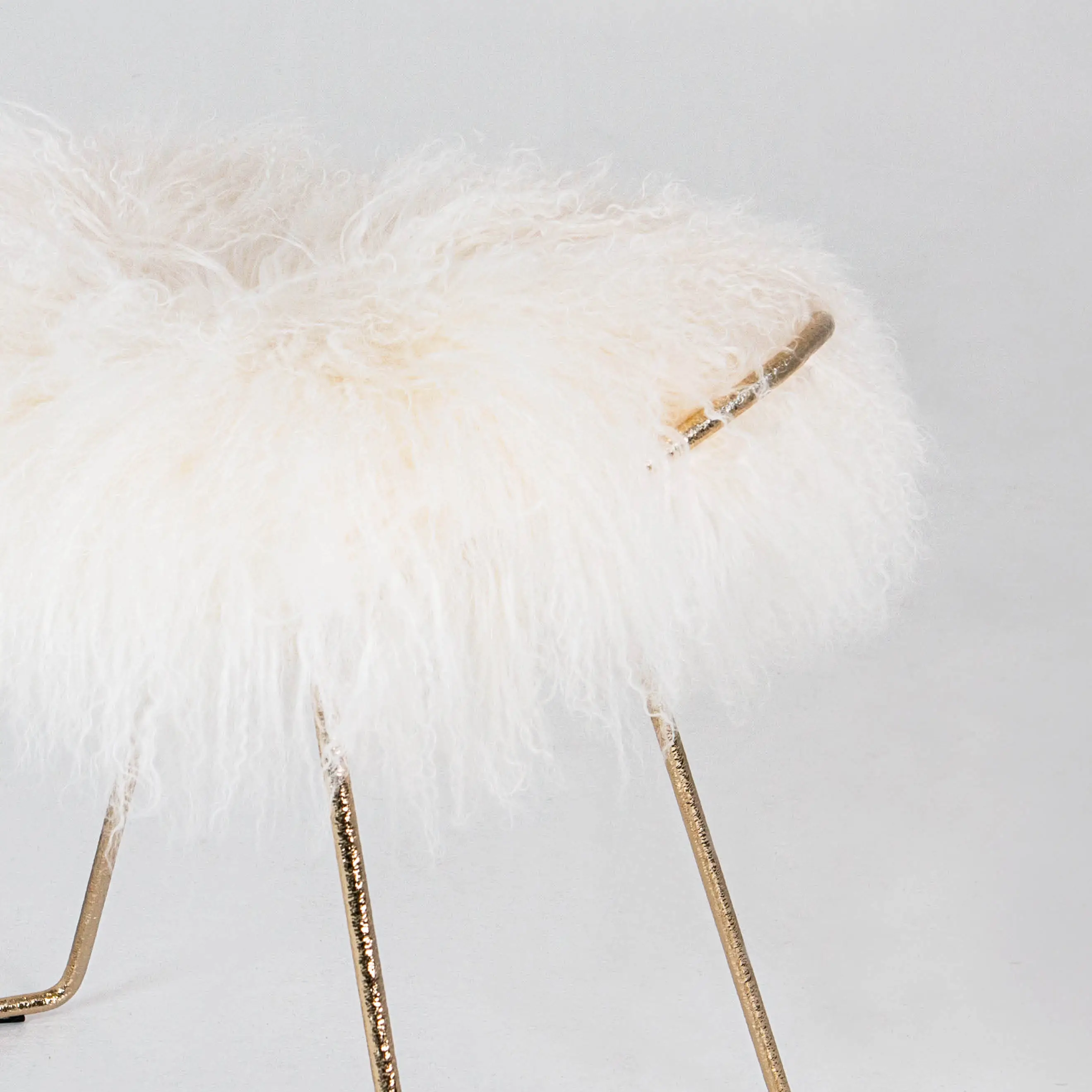 Twig pouf embodies the essence of refinement with a thin moulded metal rod frame that wraps the seat. The metal, subjected to a refined frosting process carried out by master craftsmen, gives the pouf an aura of modernity and originality. The upholstery of the seat, upholstered in Mongolian fur, offers enveloping comfort, creating a game of contrasts with the metal parts.