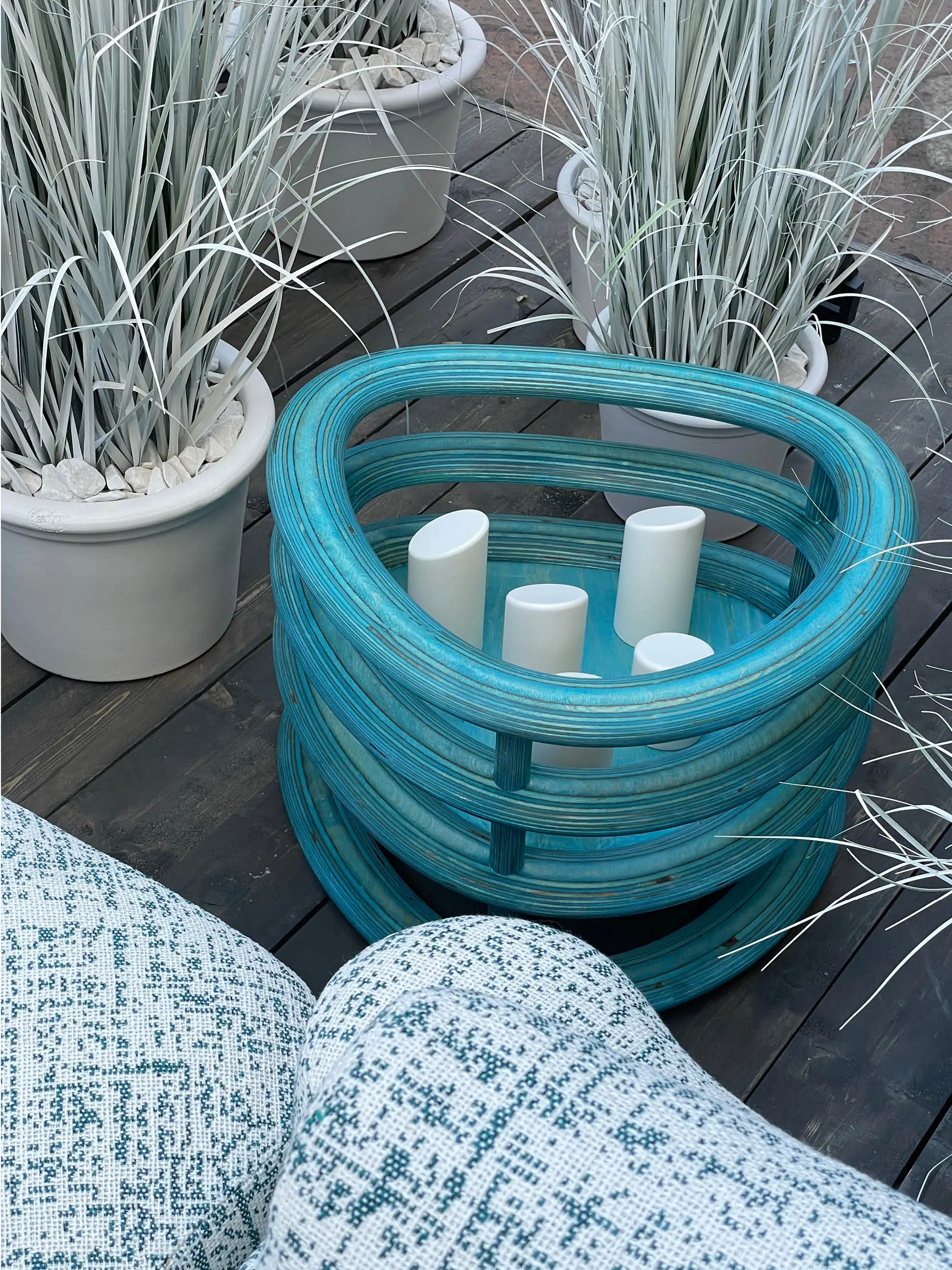 Il porta lampada Itaca, realizzata con tondini di legno multistrato, è progettato per completare terrazze panoramiche, ampie verande e imbarcazioni, in abbinamento agli altri prodotti della stessa collezione.