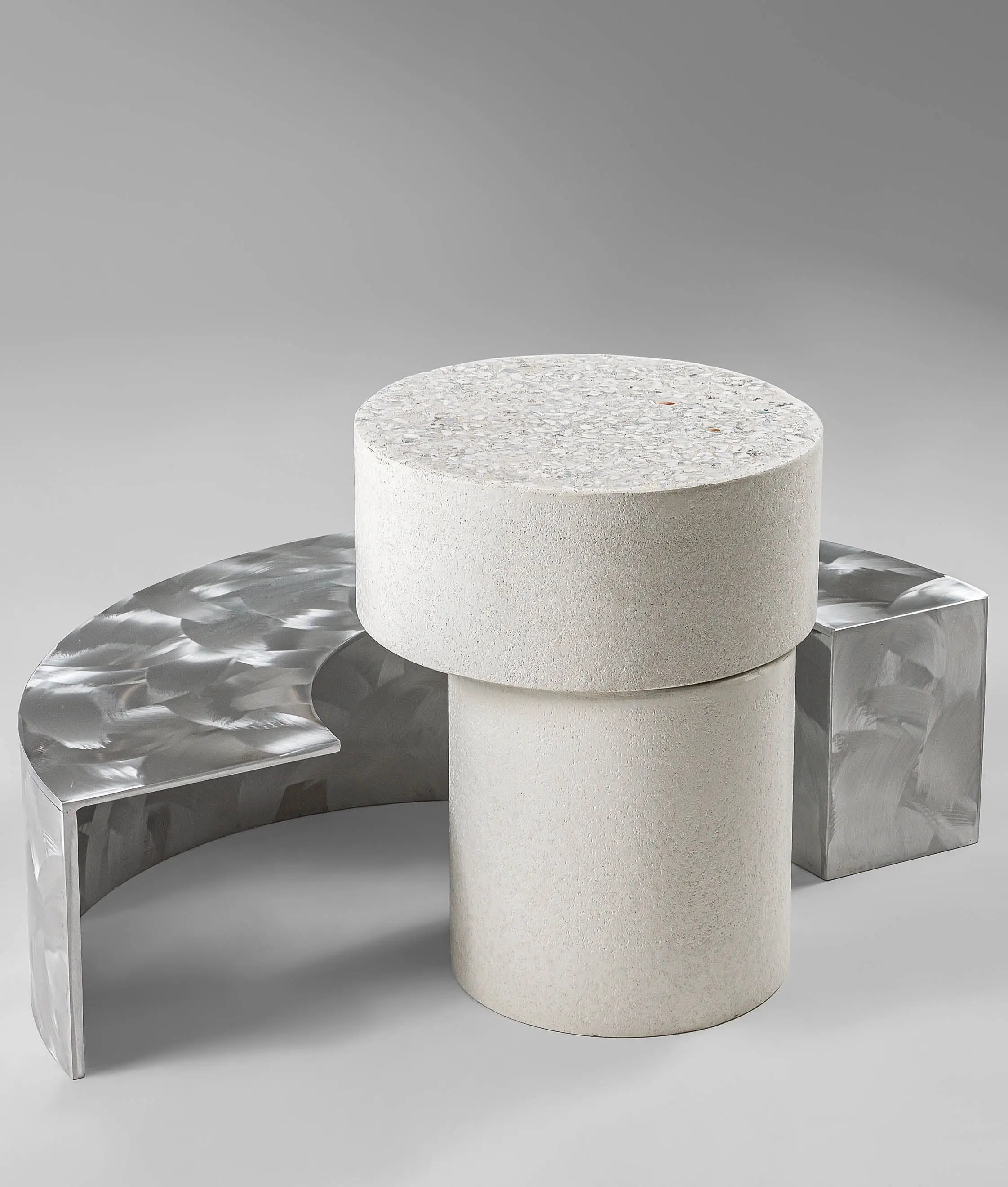 Orion è un tavolino a mezzaluna realizzato in alluminio, progettato per gli ambienti outdoor ma adatto anche alle aree living indoor.
